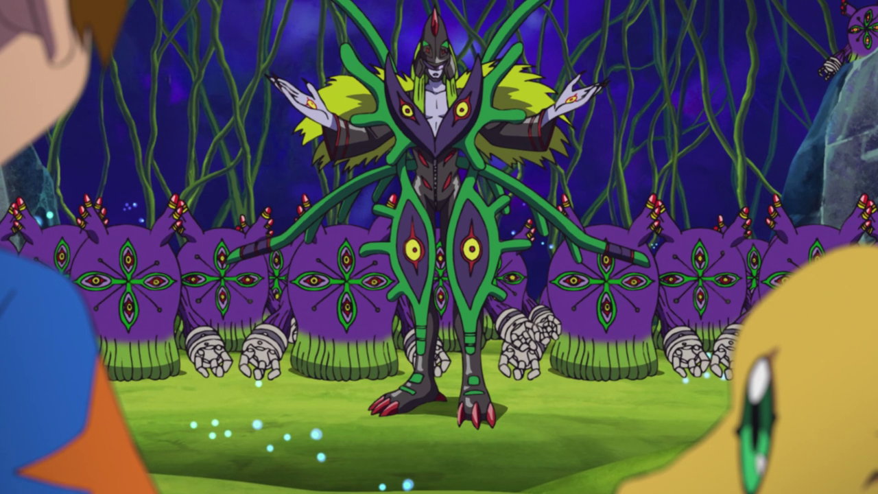 Algomon makes a reappearance after causing so much damage on several different occasions. I will say that it’s interesting that Algomon doesn’t go through a namechange when it evolves and just considers all of its forms as Algomon but just different level stages. The way they act and think seems to be akin to just sharing one mindset among a bunch of worker ants and all just do things according to their “master.” And boy when that Algomon evolved, it totally ended up looking like a magical girl villain. You can’t convince me otherwise lol.