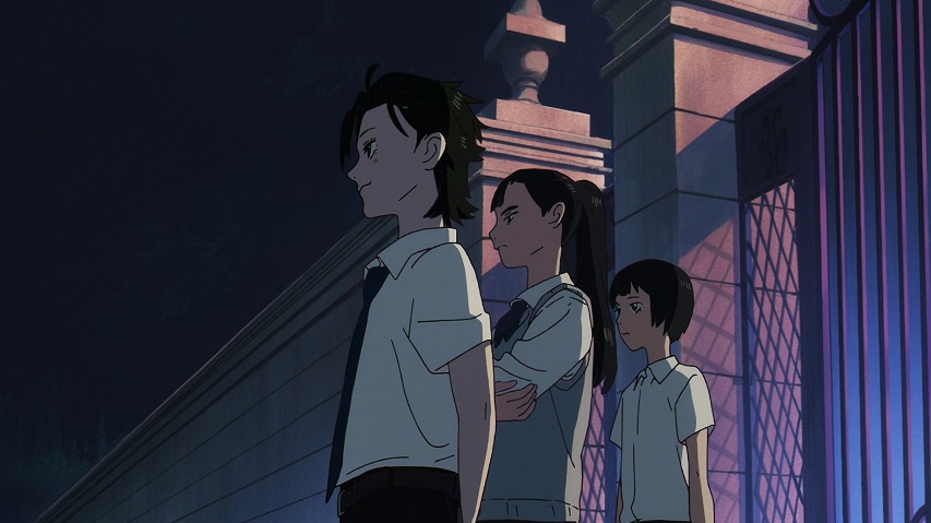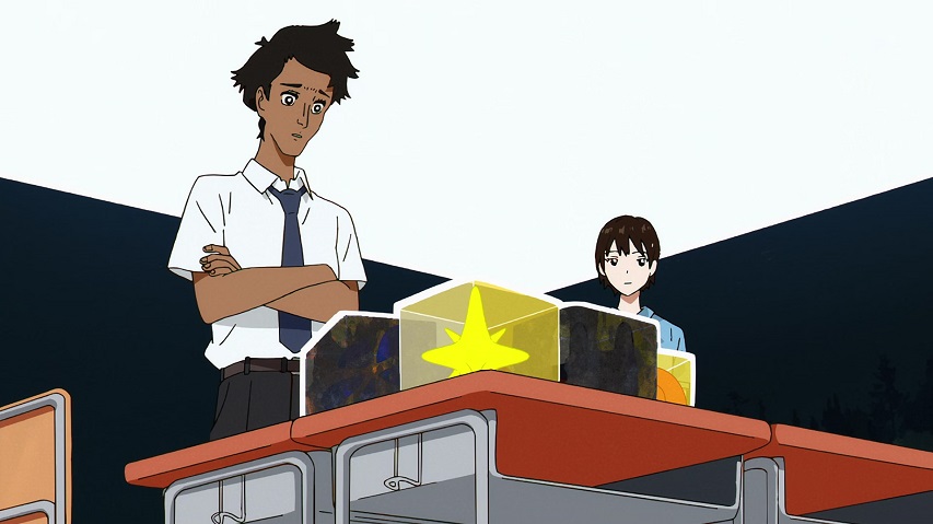 At the very end of the episode, Nozomi shares with Nagara and Rajidani that she can see the reality they are supposed to return home to. It is the reason she jumped off the school in the previous episode; but in this dimension that dimension “gate” is merely a pinprick of light in the sky. She tells them her ability is called “Compass.” Guess Nozomi’s not so useless after all.