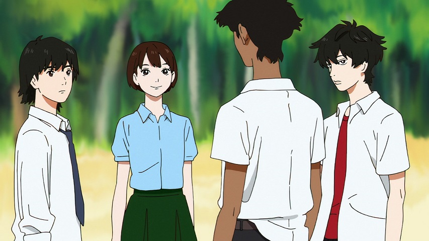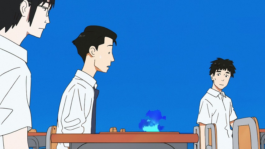 Nagara, Nozomi and Mizuho lament that they can’t stay on the island anymore because with the trees now gone, they can’t make any structures. Then suddenly in the blink of an eye, the island is repopulated with trees and other greenery. The students think that Asakaze’s ability to manipulate the elements and put the flames out is the cause, but Nagara and his friends speculate that the island was able to rejuvenate itself. Another rule from this dimension?