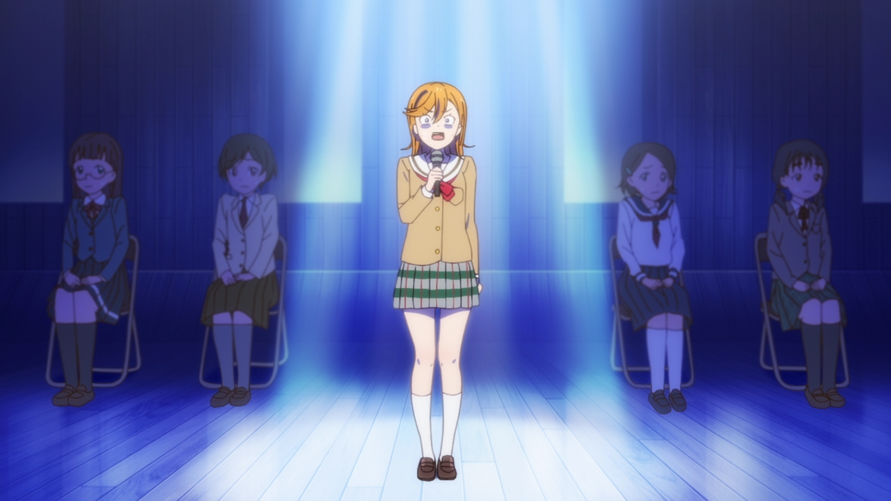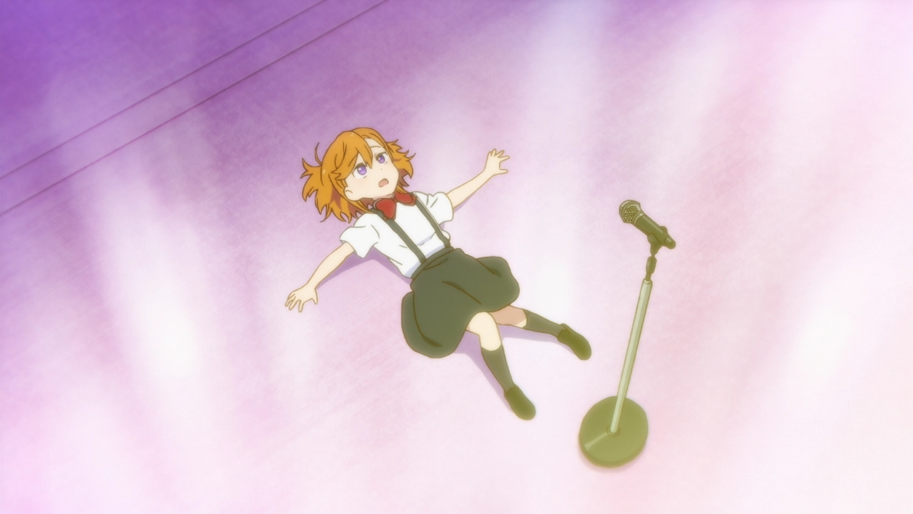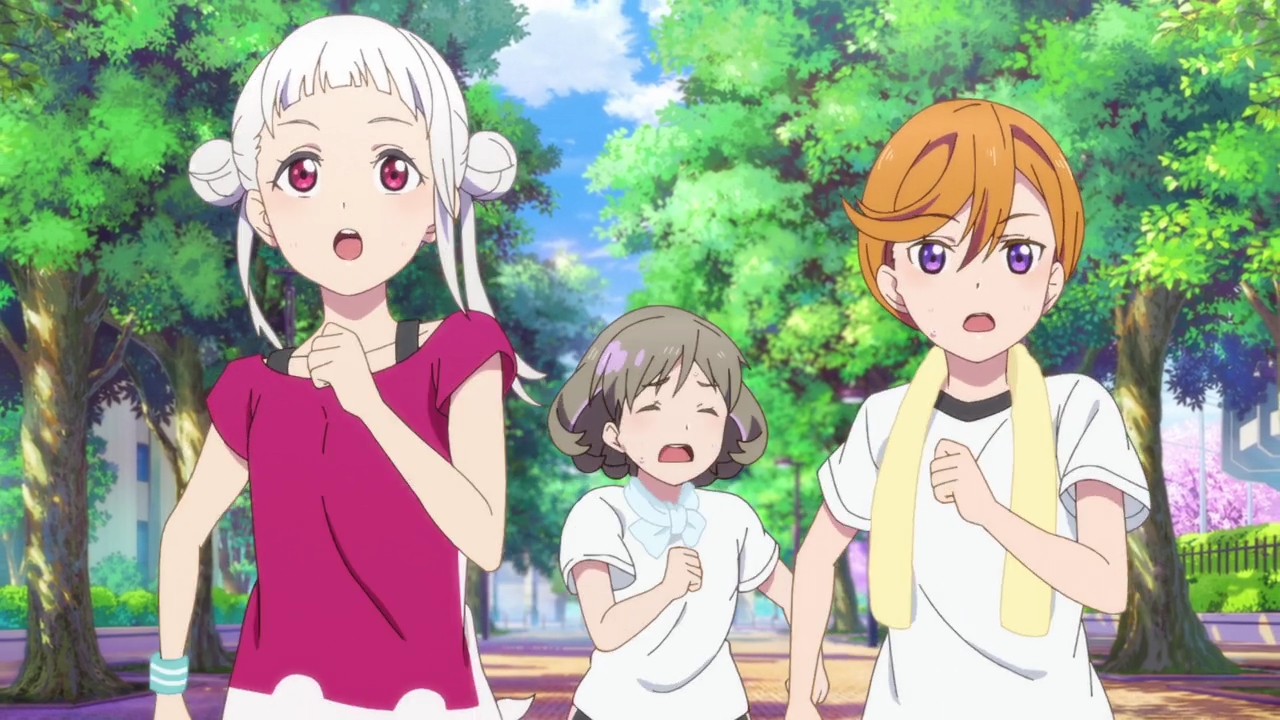 What will happen at the competition? Will all their hard work be for nothing as Kanon falls apart on stage? Will that happen and will the director reject them? We still haven’t exactly seen Kanon sing in front of people again, and she was really hesistant when Keke asked her to. The episode cut off into the (gorgeous) ED as Kanon seemed like she was about to so we don’t really know whether she’s ready or not. She’s got what it takes when it comes to dancing, stamina, composing, and her actual singing voice. We still don’t know whether or not she’ll actually sing and perform in front of everyone and her reaction at the end wasn’t too sure either. I’m not sure what will happen, but like I said, it would be pretty disappointing if she got over her stage fright just like that. I think it would be a really great moment for growth if they did bomb their performance, as sad as that sounds. I enjoyed when that happened in Sunshine because it allowed for them to grow and really set realistic goals for themselves. Kanon and Keke bombing would be sad, but with how horrible Kanon’s stage fright is, it would be realistic. I’m really excited to see how everything plays out next time!
