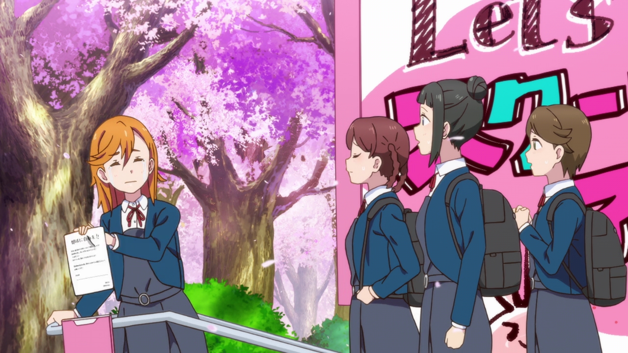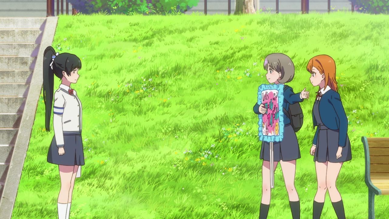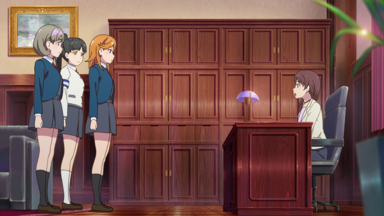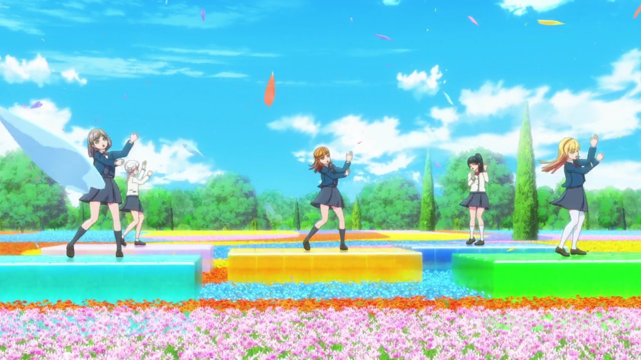 What will happen at the competition? Will all their hard work be for nothing as Kanon falls apart on stage? Will that happen and will the director reject them? We still haven’t exactly seen Kanon sing in front of people again, and she was really hesistant when Keke asked her to. The episode cut off into the (gorgeous) ED as Kanon seemed like she was about to so we don’t really know whether she’s ready or not. She’s got what it takes when it comes to dancing, stamina, composing, and her actual singing voice. We still don’t know whether or not she’ll actually sing and perform in front of everyone and her reaction at the end wasn’t too sure either. I’m not sure what will happen, but like I said, it would be pretty disappointing if she got over her stage fright just like that. I think it would be a really great moment for growth if they did bomb their performance, as sad as that sounds. I enjoyed when that happened in Sunshine because it allowed for them to grow and really set realistic goals for themselves. Kanon and Keke bombing would be sad, but with how horrible Kanon’s stage fright is, it would be realistic. I’m really excited to see how everything plays out next time!