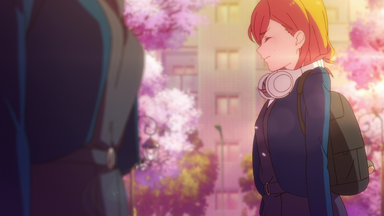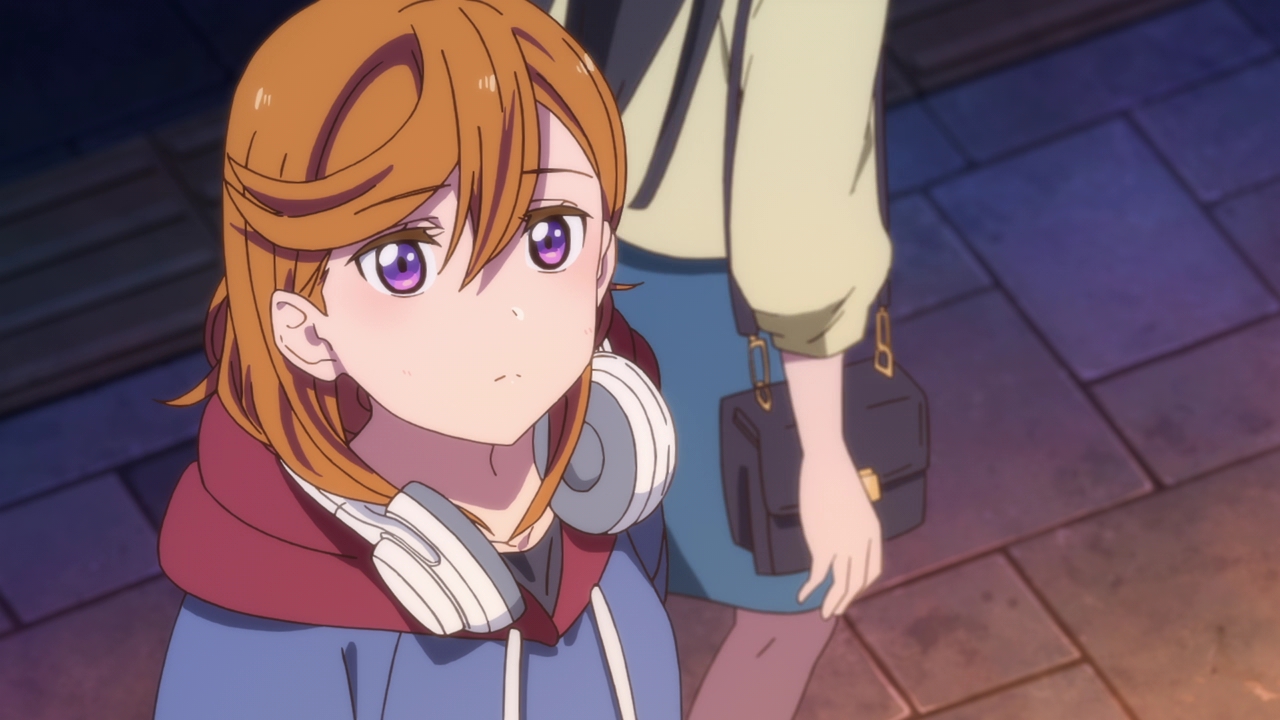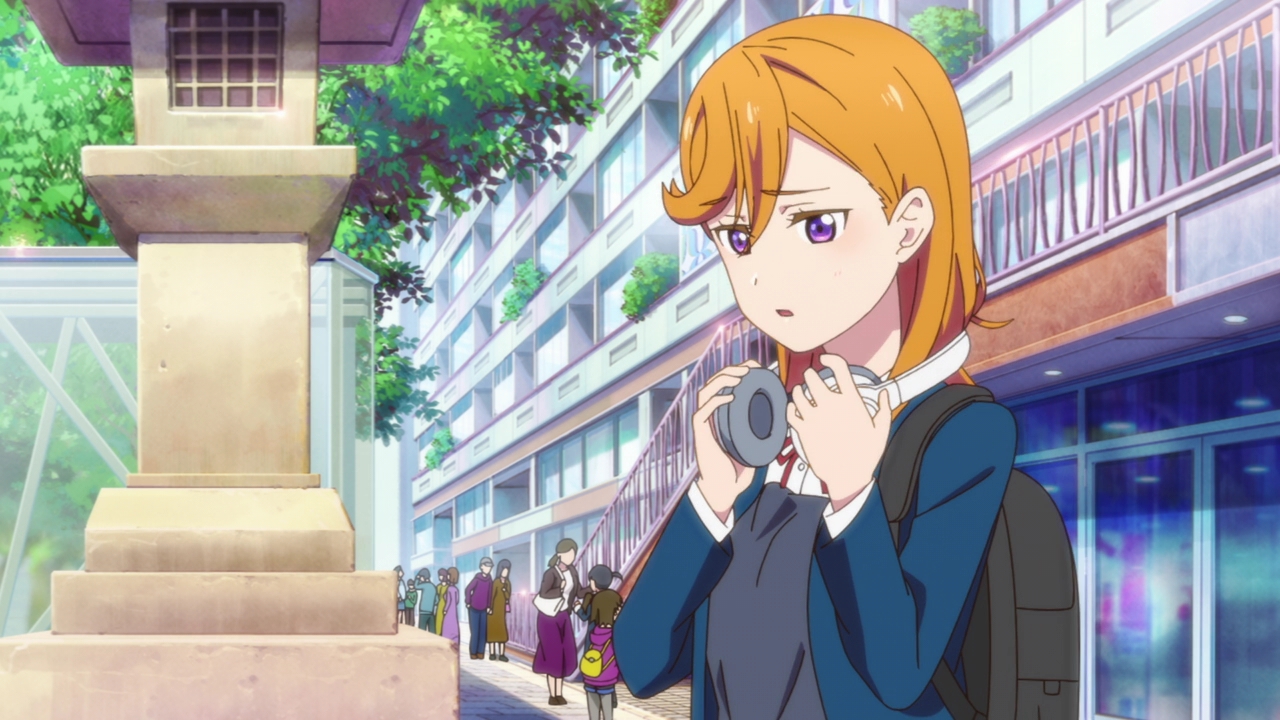 Now, I know we had that huge musical number at the end and Kanon actually sang in front of everyone in Harajuku but I hope that wasn’t a magical fix to her stage fright. I hope she still struggles with it so we can slowly see her character grow both in stage fright and with her attitude. She’s really down on herself and she’s basically given up her dream, so it’ll be fun to see Kanon face her fears and see her live up to her dream of singing and performing. So far, I really like Kanon’s character a lot and she’s definitely a fresh air in the Love Live franchise with her personality. She’s strong willed, opinionated, and has a social anxiety issue that actually feels real. Her design is really great as well with the headphones, using it so she can tune out the world and be in her own zone. It says a lot about her. Hmm, reminds me of Neku from The World Ends with You, but less mean.