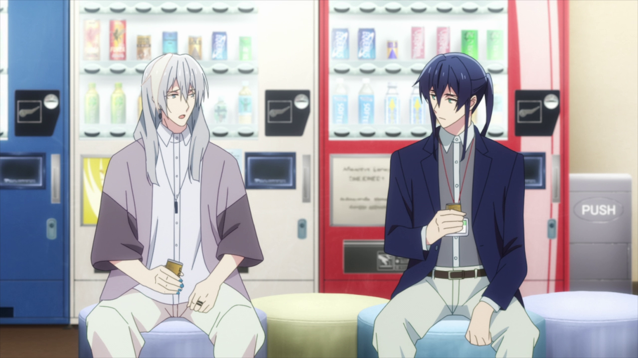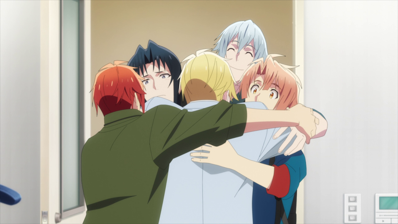 Idolish7 gathers for their first job together since the fallout and it is awkward and tense as heck. At least the group hug when Mitsuki and Iori came in was wholesome as heck and Sogo becoming Nervana tickled me greatly lol. It was cute how Sogo’s hug was the most pure with both Izumi bros blushing and smiling. It’s nice to get a hug from mom~ However, the pure atmosphere couldn’t last when Mitsuki and Yamato face each other since the fight. While Nagi tried to get them to see that they are incredibly compatible friends, Yamato and Mitsuki just weren’t in a good place to reconcile yet. While it seemed their conversation was cheerful, it came across as forced and fake. Which was incredibly sad to see, especially when it shows that Yamato was searching for permanent place to live away from the others.
