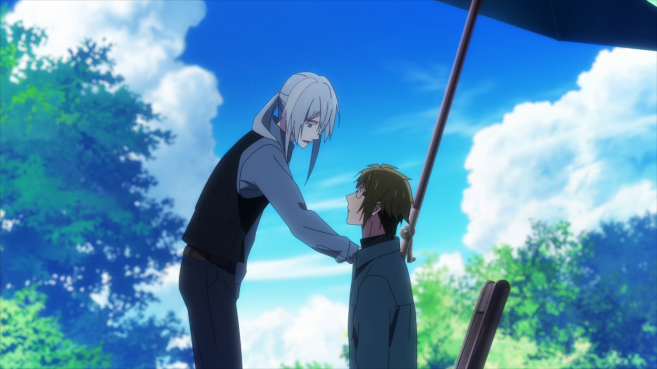 I also want to take a moment to talk about the symbolism in this episode. Through out this season, Yamato has constantly been shown in the shadows, just showing us how he views himself and doesn’t believe he deserves to be out in the light with the others. At the start of the scene where Yamato finally starts opening up, he’s entirely covered in Momo’s shadow. However, when Momo bends down to talk to him, it allows some light to touch Yamato for the first time. And I love how Momo’s front is facing the shadow that has engulfed Yamato as if he’s willing to look at the true Yamato despite how “dark” it is. And then when he was opening up to Yuki, he was still in the shadow of an umbrella. There was also a very obvious divide between the two with the umbrella. However, Yuki crossed over to him and into the shadows to meet him where he was. It felt so meaningful for Yamato to finally cross over onto Yuki’s side and into the light for the first time. And that shot of Yamato standing in the sunlight surrounded by beautiful scenery was just had so much significance. He’s finally being set free from the restrictions he put on himself and showing himself some grace by allowing the others back into his life. Troyca, you’re killing it with the symbolism this season.