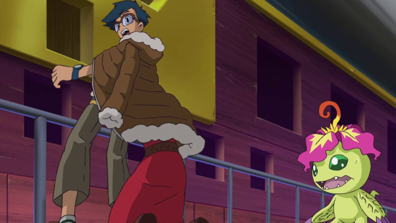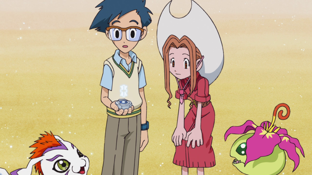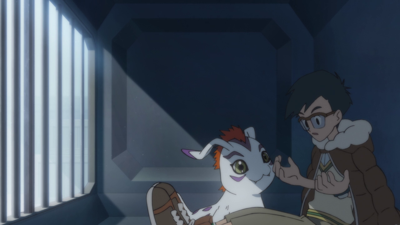 And man I’m SO GLAD that Joe didn’t run into Taichi and instead Mimi who was out on a field trip with the Digimon school. Not to mention Taichi didn’t even appear until the end of the episode. See, Digimon. You don’t NEED Taichi to be present at every situation. Seeing the others interact with each other is a breath of fresh air instead of only Taichi interacting with everyone else. And I feel like my younger self would have been overly thrilled to see Joe and Mimi interact since they were my childhood ship. Their dynamic was pretty hilarious as she literally hid underneath Joe’s coat and basically puppetted him into being the leader of the group against Olegmon. Couldn’t help but spit a laugh at that lol. Though it does look like Mimi was promoted to “sensei.”