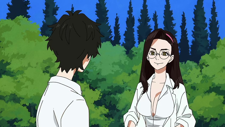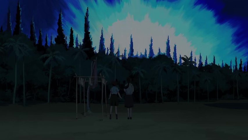 For starters,  Ms. Aki has arrived at the island world in the flesh, but she’s “different” now. Her temperament and personality are much more aggressive and dominant (compared to the teacher the students remember from their world back home). She tells the students that they can never go home, that Nagara is lying (about not being able to take everyone home) and that Nozomi is lying too (that their world is a light in the sky and she can see it). When the students ask Ms. Aki how she arrived at their island, she says “God needed her to.”