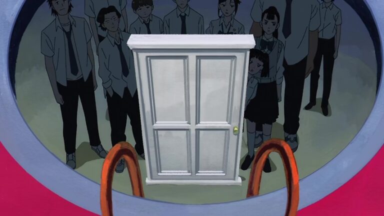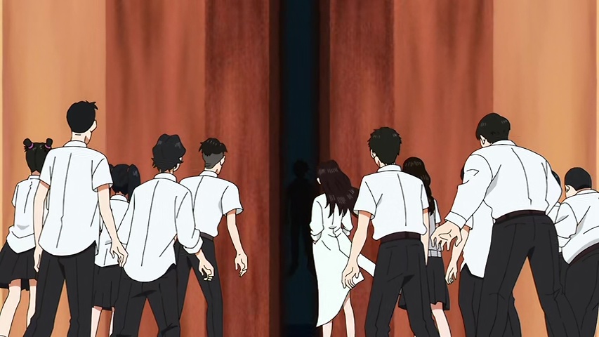 I have lots of questions about Ms. Aki too. Is she really Ms. Aki?? Does she have her own superpowers too? If not, how were she and the students able to get from the other world back into their home world via that “open door” that parted reality in front of them? If that was Ms. Aki, can she control that power at will?