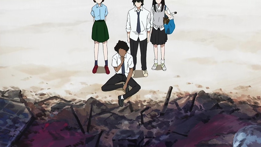 Moreover Ms. Aki says that the “savior” (mentioned by Hoshi in a previous episode) is actually Asakaze. By turning a portion of the students away from Nagara and his friends and pointing to Nagara as being the reason everyone is still stuck on the island, Ms. Aki is dividing the students into those who support Nagara and those who think he’s lying. By stoking the students’ fears about never being able to go home and losing the lives they left behind, Ms. Aki is provoking the situation into something that could potentially be dangerous for Nagara’s safety. Heck, even in this episode Nagara’s (former?) friend Hayato doesn’t hesitate to push him to the ground. Who’s to say a group of students aren’t going to jump Nagara in a future episode and beat the tar out of him??