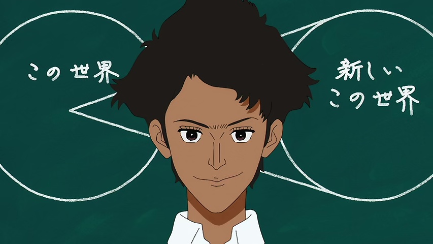 We learn near the end of the episode that Nagara’s superpower of “world-hopping” actually might not be that at all. When Rajdhani, Mizuho and Nozomi go looking for Nagara after he poofs away from Ms. Aki and some angry students in another world, the trio come across an island world that looks very similar to the one they’re on now, but with one key difference: everything is burned to a crisp. Rajdhani theorizes that Nagara’s ability is actually to create new worlds, not jump to them. Everyone had thought that Asakaze’s power restored the island they were on (the one set alight by blue fire), but apparently this is a new island world altogether!