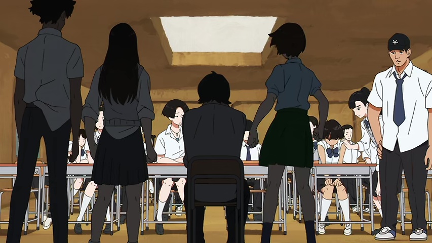 Ms. Aki brings forth additional new information: that apparently the drifting was caused by a student having their superpower and using it prior to the events of the series starting. No one comes forth and admits it, but if you think back to the first episode, you can guess who the culprit might be. (This explains Mizuho in the large school room full of luxuries. One mystery solved!)