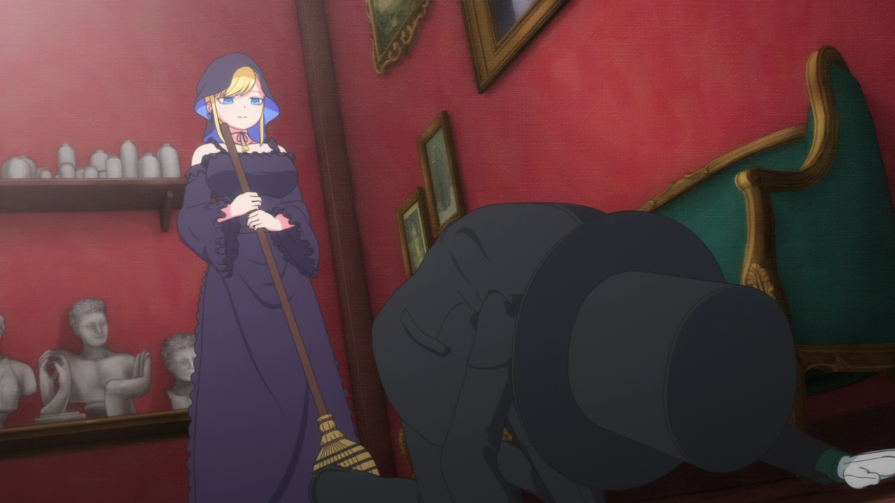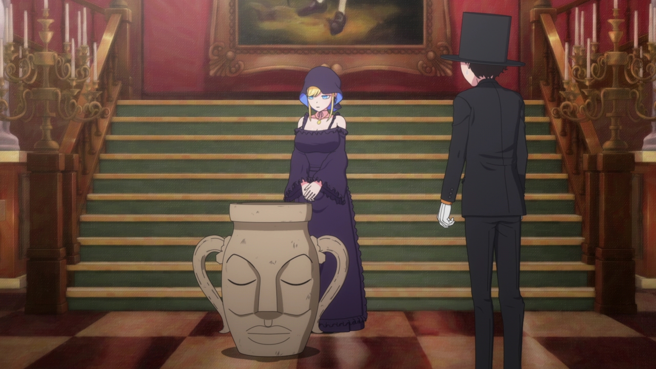 As the title of the episode suggests, this episode was mostly uneventful. It wasn’t a bad episode, but hardly anything happened other than: Alice tries to help the Duke break his curse with whatever she can find, and the Duke trying to scare Alice to make her doki doki but accidentally breaks an important plant vase and hides from Rob.