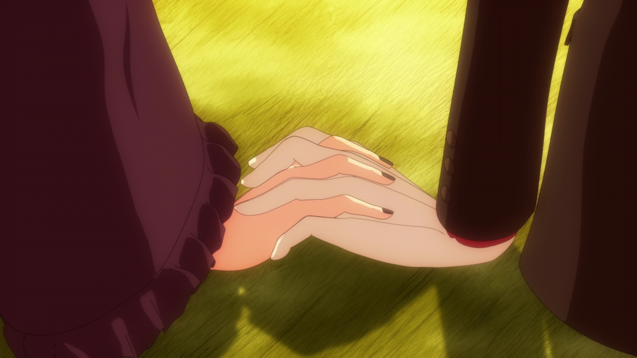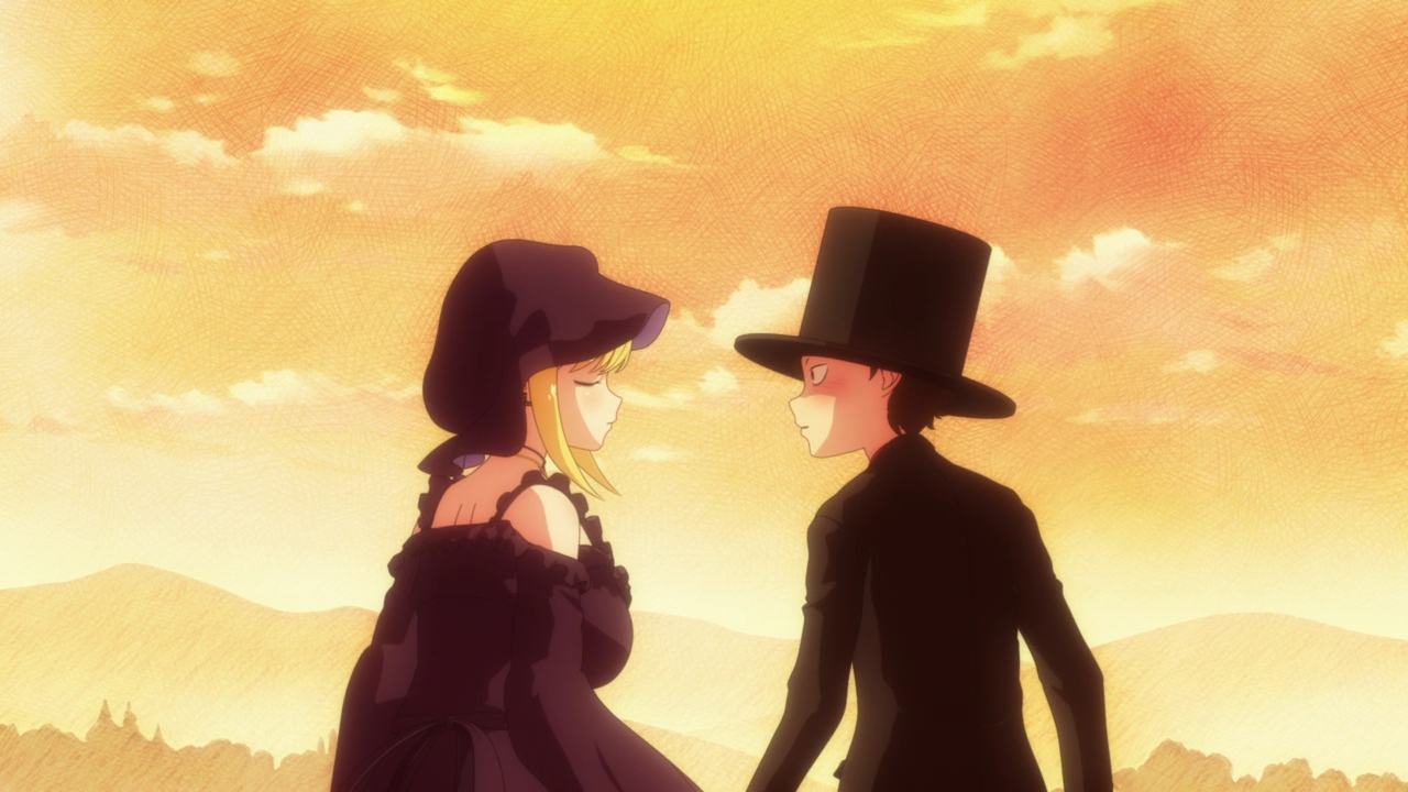 And lastly the third method was the one at the very end of the episode after the credits where the Duke and Alice get transported to the story of Alice in Wonderland after the spirit of Alice sends them to catch the white rabbit. They don’t, after they get distracted having fun together. And the best part of it was that because it was a dream, the two were able to touch each other (even though they couldn’t really feel it). This is probably a rare opportunity to see them holding hands and just being cute together. I knew the kiss was going to be interrupted, but darn it…it would have been really nice to have actually seen it. Though it’s cute that when the Duke wondered if the dream would start from where it left off last time, Alice was still dreaming away even after her usual 7 hours of sleep. The dream was really that nice.
