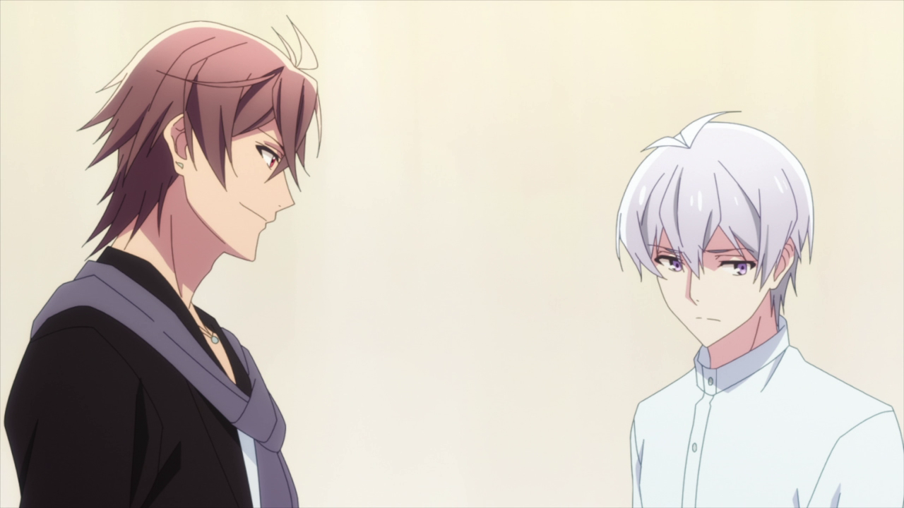 We get to see more of Torao this episode and my gosh he really does fit the nickname “garbage man” well. As soon as he approached Tsumugi and started flirting with her I was like: OH HECK NO. BACK THE HECK OFF SIR. Thankfully Toma being the better one of the group pulled him back and allowed Tsumugi to go in peace. But my opinion of the guy only gets worse when he confronts Sogo and starts talking smack about him and how his dad must be so disappointed in him. Again I was like: BACK THE HECK OFF SIR. We’ve seen Torao try and push buttons with Ryu before, so it doesn’t surprise me that he’s just trying to rile everyone he talks to up with all the information he’s gathered on them. And man, is it INFURIATING. You could tell Sogo was uncomfortable talking with him as he did his very best to conceal his emotions behind that conditioned polite smile that he was most likely forced to wear while conversing with people of high status growing up. And man, Sogo looked like he was about ready to throw hands when Torao told him “try being a dutiful son every once in a while.” Thankfully Tamaki was able to deescalate the situation before Sogo could reach his boiling point, but not without Torao trying to take jabs at him as well. However, Sogo gives one of the SICKEST burns I have ever heard him say, successfully wiping Torao’s initial grin off his face. All with a smile no less. Gotta give him a hand for that. Already, Torao is a frustrating character to watch as he’s constantly making jabs at others to elicit a reaction from them. And yes, I really wanted to punch that stupid grin off his face.