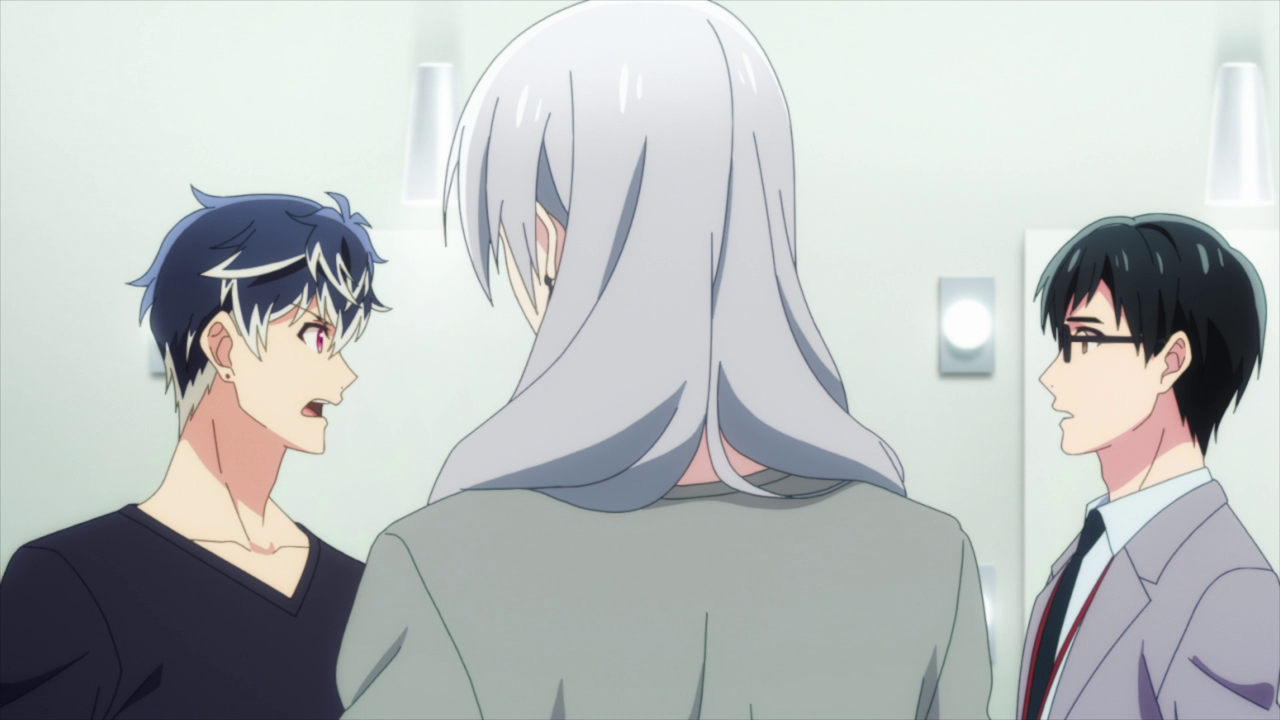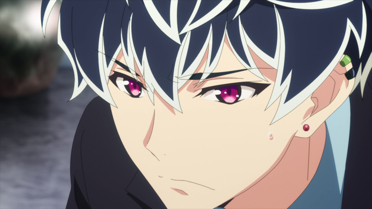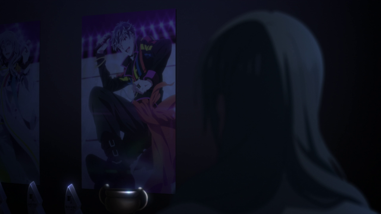 Now, this may be a personal thing but it’s something that has always bothered me a little bit. I know that this is common in boy bands and K-pop groups where there is always a popular favorite amongst the group members who gets more attention than the others. But in a story telling standpoint, it feels like Riku being pushed as the favorite to an almost alarming degree feels too forced at times. I understand his charm and he’s cute, but sometimes it can be a little too much. For me at least. This could be a callback to what Kujou said to him back in episode 2 where he said that Riku was like Zero most likely in the way in how he draws people to himself. However Kujou mentions that if he were to produce Riku, he would just end up in sadness. I’m not sure exactly what that means, but it could hint that Riku could be heading towards the same path as Zero with such a booming popularity only to end up disappearing. To which hopefully that won’t happen, but it is starting to get a little foreboding. Especially with how their song became all distorted at the end of the scene.