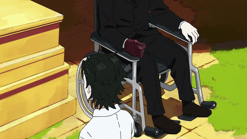 This episode introduced a couple of new characters. One is an old man in a wheelchair, and while it is not explicitly explained who he is, I think he is the school’s principal and also the unknown narrator (the voice that’s been speaking to both Hoshi and Nagara). The other is a huge talking black dog named Yamabiko, who is actually middle school student Yamada Kunihiko.