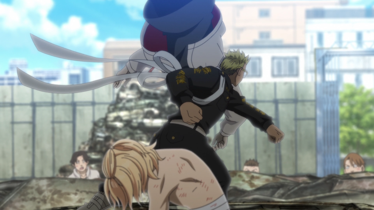 If I were to give a play by play of my reactions for this episode it would most definitely go like this: “BAJI!!! HELL YEAH BAJI!!!, BAJI?????, BAJI NO!!!!, GO BAJI GO, OH MY GOD BAJI, and BAJI NOOOO”. We’ll also go ahead and sprinkling of some cursing about Kisaki in there, but I was pretty stoked to see Baji show up. I am… however, not exactly excited to see that he probably… won’t be showing up again. But there is still hope, right? I mean, he’s not dead yet.