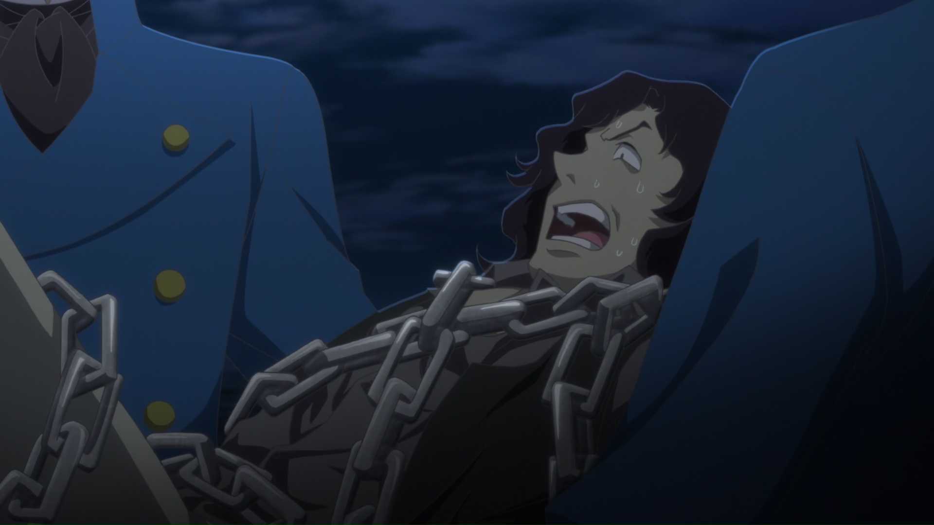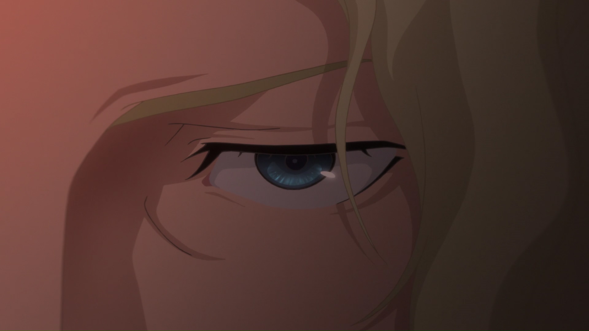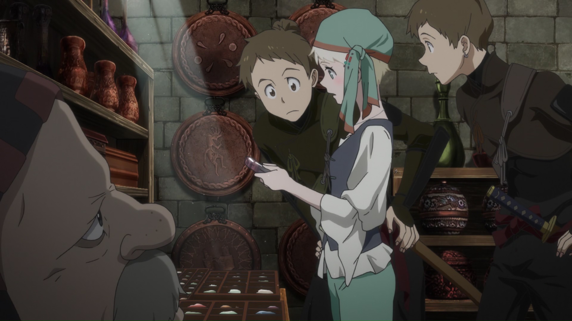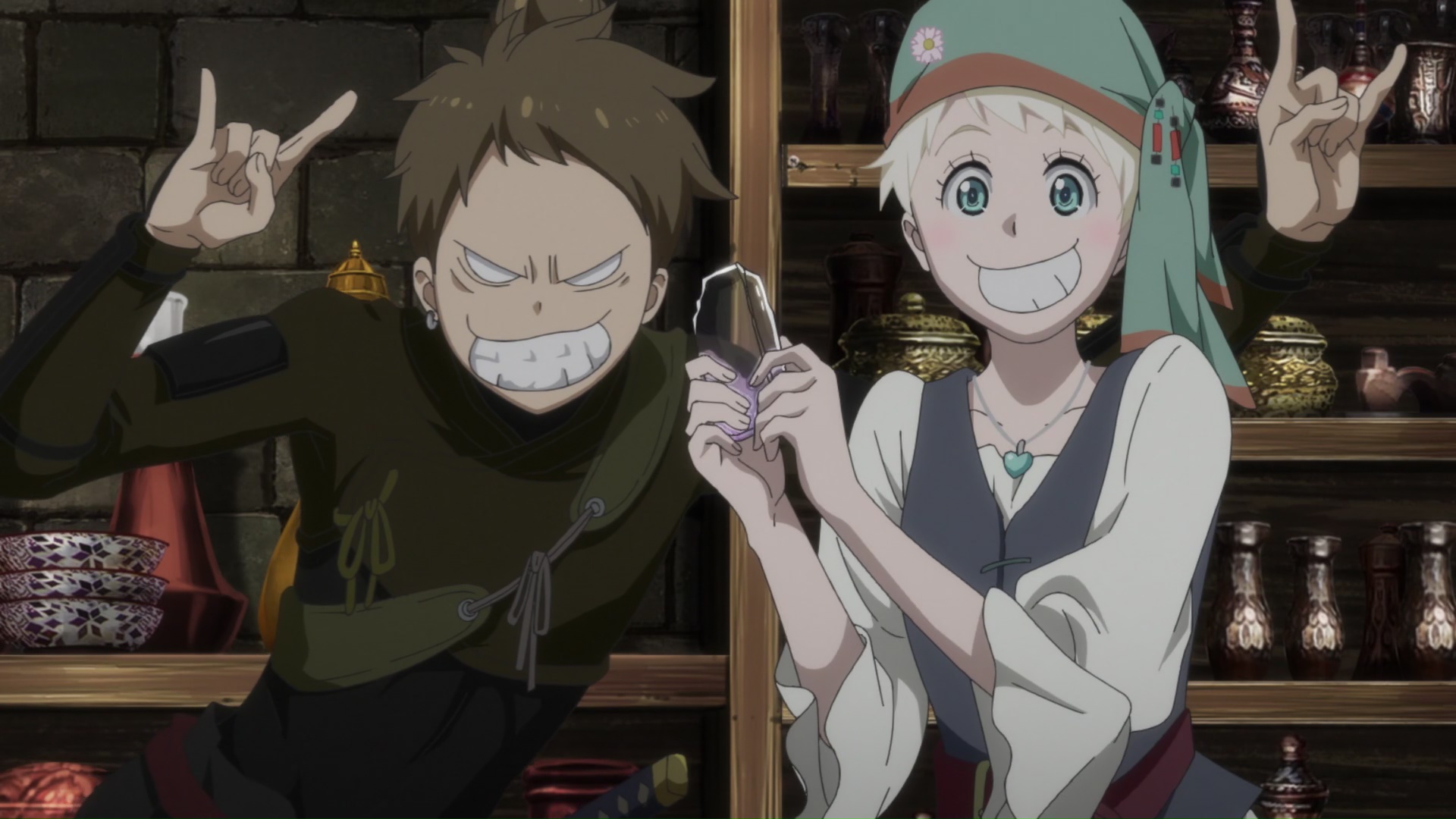 At the end of the episode, we see that the rude drunk was thrown overboard and drowned for failing to capture Fena. Inside the ship is the regal-looking blonde man, whose name we learn is Abel. He has a pale blue heart necklace like Fena does, so this only increases my suspicions that he’s tied to Fena somehow.