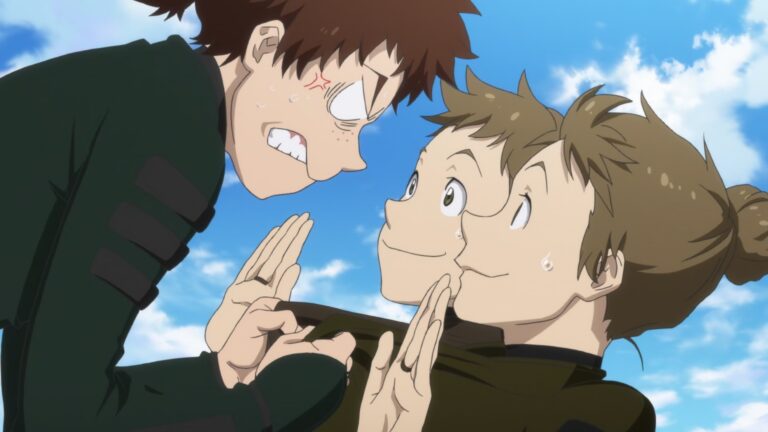 The pair make it back to the ship safely along with the twins, where Tsubaki delivers the twins’ and Fena’s punishment for leaving the group and deciding on their next destination without consulting the others: a smack on the head from a stick and being thrown overboard (“flinging”). Yukimaru discloses to Shitan that he’s concerned about the female pirates but does not reveal why.