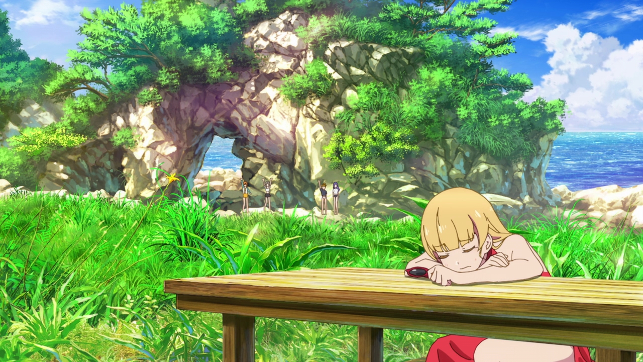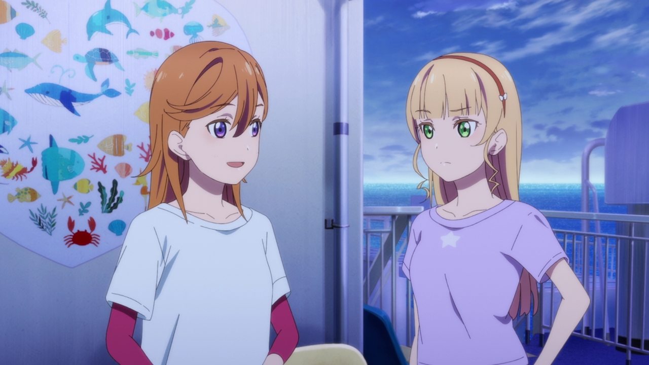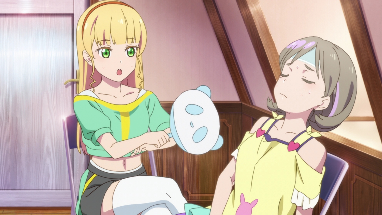 As for the rest of the episode, it was fun and cute. Sunny Pas makes friends with the girls and invites them to their home island to take part in a concert with them. For a famous group like them to personally seek them out and invite them like that is pretty huge, and I’m surprised that Keke didn’t pass out in that moment. Keke cheering with her penlights with that large portrait was very funny though. She is truly a fangirl. I don’t have too much of an opinion on Sunny Pas right now, they’re both pretty nice but I’d like a bit more from them. I wouldn’t say that they’re plain, but they just need a little something. I’d also love to hear one of their songs soon as well. A-RISE and Saint Snow did well showing who they were with their first songs, so I hope Sunny Pas does the same because right now they don’t have that same presence just yet.