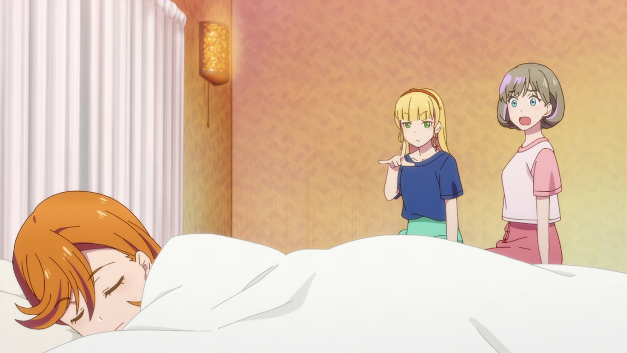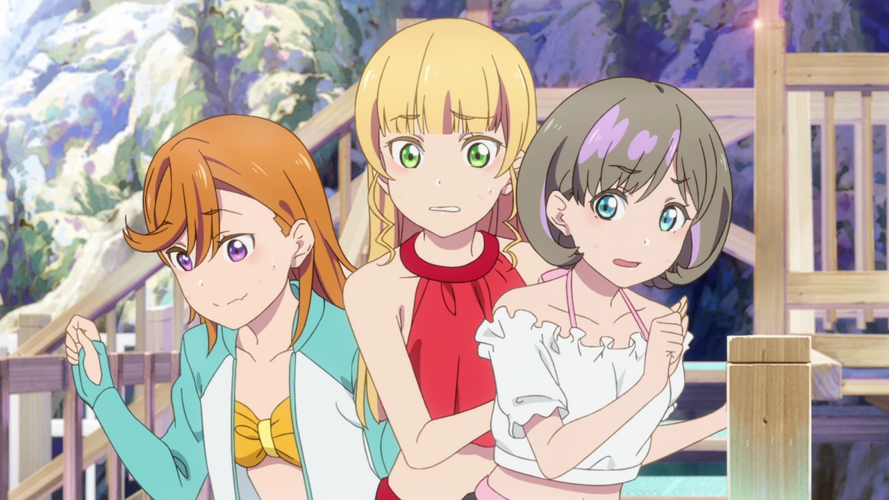 This episode was a slow set up for Chisato’s arc and her eventual addition to the group. The episode lightly touches on the question: What is Chisato to the group? She’s not a school idol, not part of the group, technically she’s kind of their coach? But to be their coach, she would have to be part of the group. So Chisato is in this really weird spot of being in the group, but not at the same time. I’m surprised Yuna and Mao didn’t straight up ask what she was doing there in the first place because it would make anyone wonder what was going on. And what Sunny Pas told her doesn’t exactly help, in fact it just made her distance herself from them so they would be more “themselves”. Her dilemma isn’t over because now she has this dance competition on her head, which eventually she ends up accepting. The school withdrawal letter in her bag is either a back up, or something she’s completely decided on after she does her one last hurrah in the dance competition, whether she wins or loses. I always found Chisato’s predicament interesting so I can’t wait to see how they’ll go about it next time, where I suspect she’ll make her final decision.