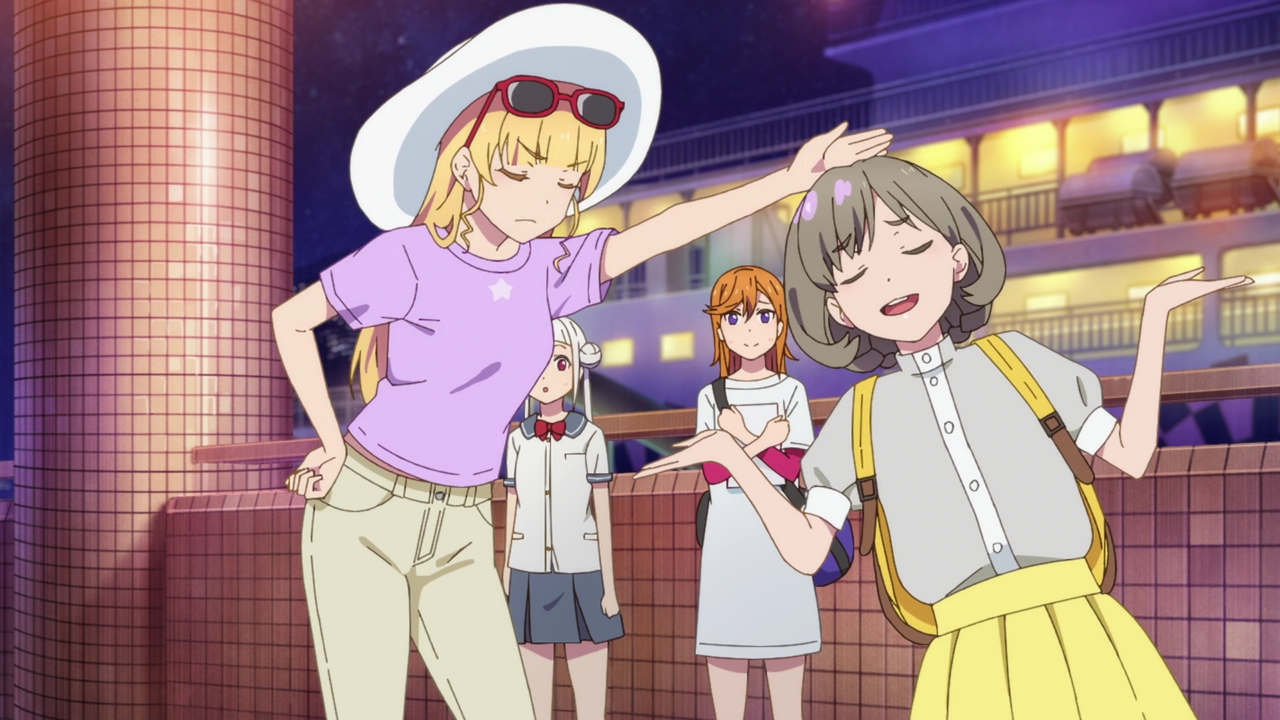 This episode was a slow set up for Chisato’s arc and her eventual addition to the group. The episode lightly touches on the question: What is Chisato to the group? She’s not a school idol, not part of the group, technically she’s kind of their coach? But to be their coach, she would have to be part of the group. So Chisato is in this really weird spot of being in the group, but not at the same time. I’m surprised Yuna and Mao didn’t straight up ask what she was doing there in the first place because it would make anyone wonder what was going on. And what Sunny Pas told her doesn’t exactly help, in fact it just made her distance herself from them so they would be more “themselves”. Her dilemma isn’t over because now she has this dance competition on her head, which eventually she ends up accepting. The school withdrawal letter in her bag is either a back up, or something she’s completely decided on after she does her one last hurrah in the dance competition, whether she wins or loses. I always found Chisato’s predicament interesting so I can’t wait to see how they’ll go about it next time, where I suspect she’ll make her final decision.