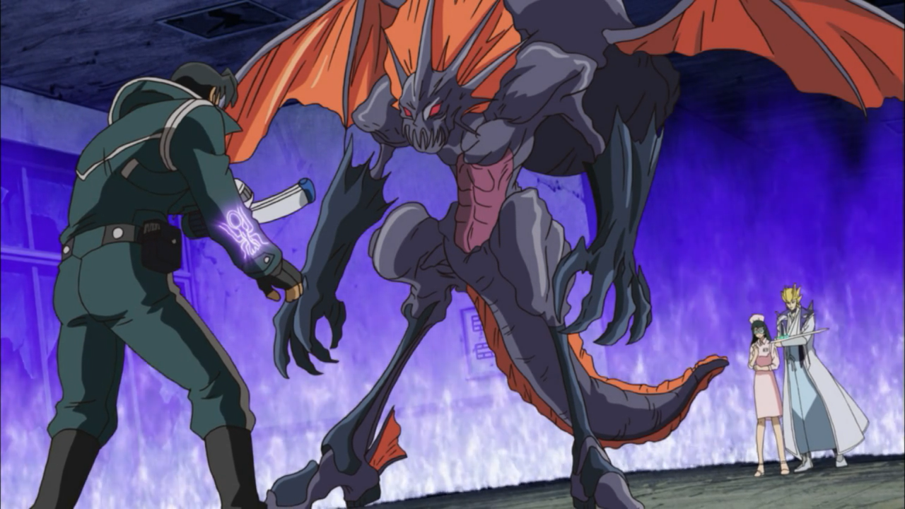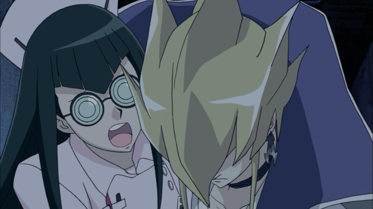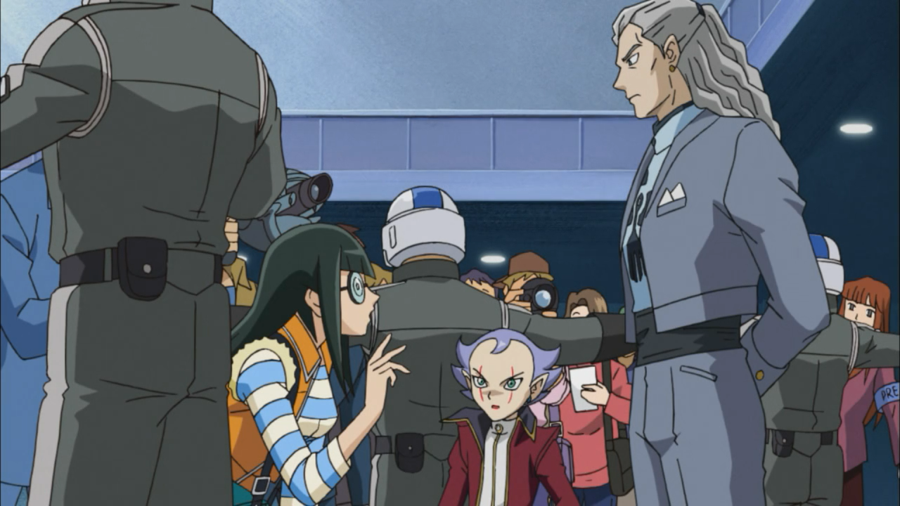 While we saw the stage be set for the Dark Signers to begin their opening act, we were also introduced to Carly, a clumsy newspaper reporter with good instincts for sniffing out scoops! In fact, Carly was the only reporter asking the real questions that should have been pressing everyone’s mind: What’s up with the Crimson Dragon and what is that mark that is glowing on Yusei’s arm? The way the feeds were cut off, preventing the audience from actually seeing the conclusion of the duel, the sheer destruction in a duel that to everyone’s knowledge, had no psychic powers involved. But I suppose when it comes down to these kinds of things, how the victor (Yusei) won is the biggest question that everyone wants answers to. After-all being so invested in the tournament, to not see the end of it is understandably frustrating. But by choosing to question Godwin about the matters of the Crimson Dragon, Carly may find herself facing repercussions given Godwin now has a reason to keep tabs on her, and had no intentions of giving her or the public any answers.