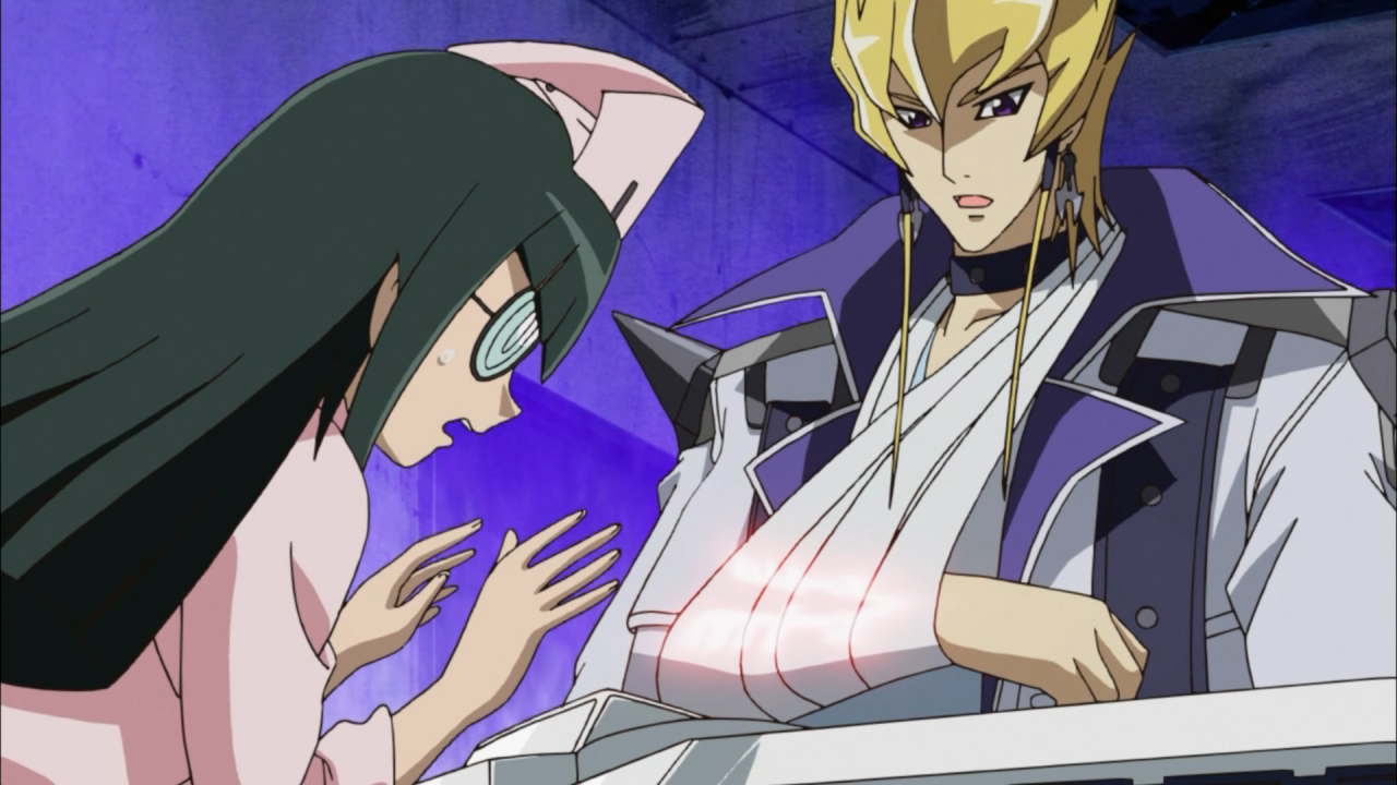 Jack’s duel was with against one of the Dark Signer’s “Puppets”, with Ushio being the latest victim to fall under the Spider Signer’s possession after Yeager sent him out to retrieve Jack from the hospital. The duel was actually quite entertaining despite the situation thanks to the the interaction between Jack and Carly. To nobody’s surprise, Jack was pretty rude about it, but Carly took it with stride and proved herself to be useful by sharing what she had learned from Yusei’s duel with the Dark Signer puppet, and shielding him from the battle impacts. At the very least, Jack did become a bit more grateful after she protected him, and trusted her enough to ask for her help to get out of there. Thanks to her, he was sneak out of the place without being noticed by the media, who were all on their toes after seeing the explosion that went off during the final attack.