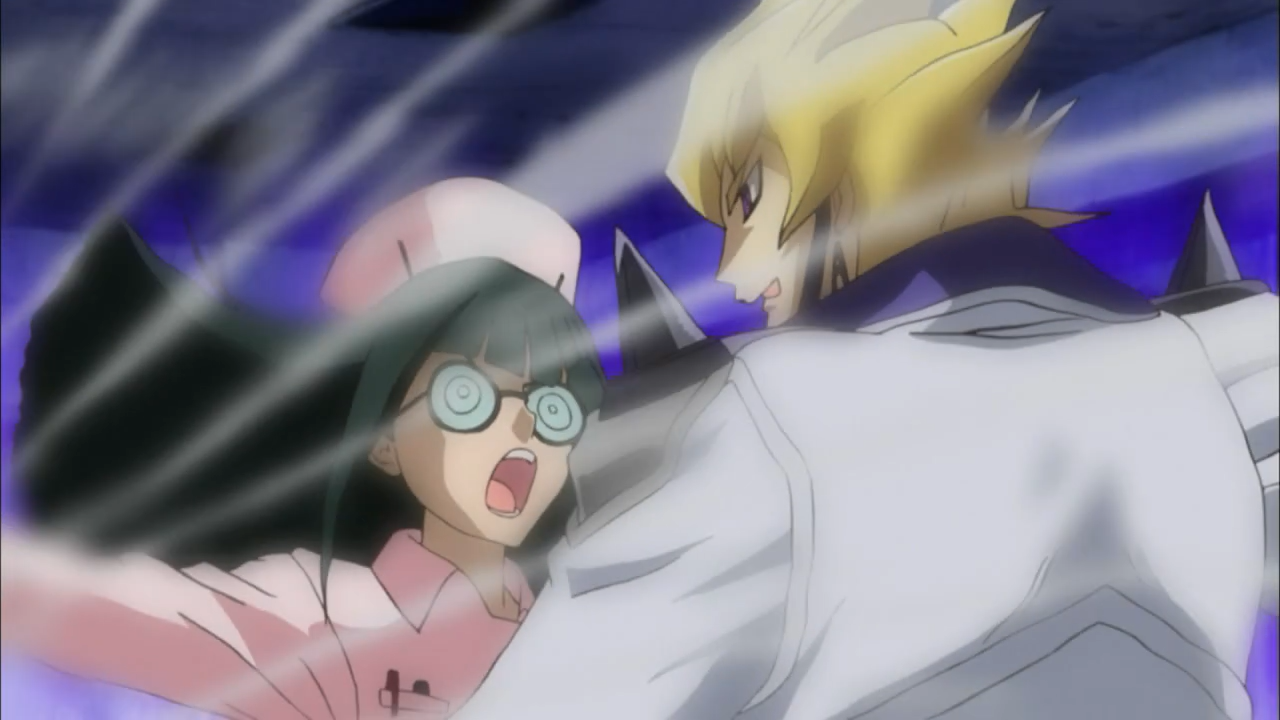 However, while Carly certainly has good instincts, boy does she have rotten luck. She gets a major scoop after witnessing the battle between Yusei and the Dark Signer puppet, and then once it’s over the security shows up, takes her camera and apprehends her for interrogation. Her Fortune deck sure know how to mock her considering she was already in an unfortunate situation. Oh, and if it wasn’t bad enough, she is told by Misty, a top model who reads faces that she’s gonna die. Lovely, thanks a lot Misty.