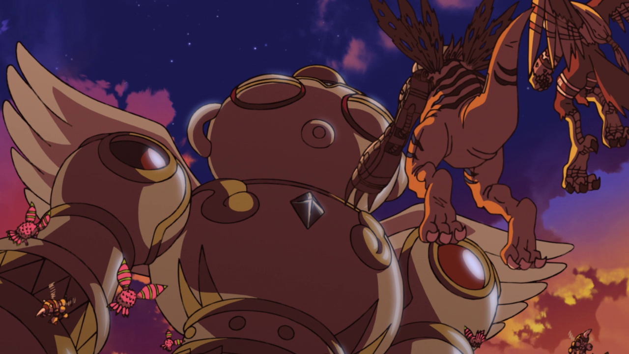 Taichi and Sora stumble upon an abandoned castle where one of the Digimon who fought in the War was waiting. On a brief silly tangent, when I saw this Digimon, I didn’t know its name and completely guessed that it was something along the lines of Valkyrie-mon. And boy was I surprised that I was actually RIGHT. While its name was Valkyrimon without the e, I still can’t believe I got it 95% correct without even knowing its freaking name. Something about it just screamed “valkyrie” and was I hyped over getting it right on the money.