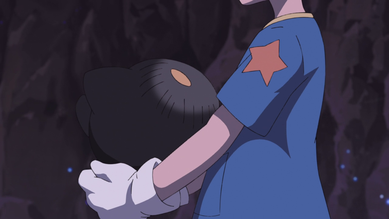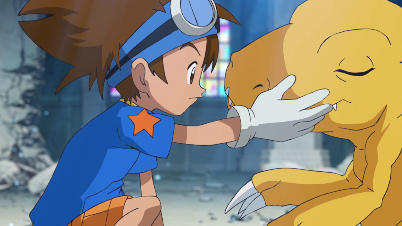 When Botamon unsurprisingly evolved all the way to Greymon, the scene felt pretty reminiscent of the first Digimon Adventure Movie. Not to be confused by the butchery that was the American Digimon First Movie, but the twenty minute short film that was the very start of Digimon. And then it became EXTREMELY reminiscent of the movie when Greymon was leaning down towards Taichi before de-evolving back down to Koromon and gave him a hug and kiss. All things that happened in that short film. And just seeing that made me feel emotional for a moment. Now if only this scene was more emotionally charged, I would have possibly broken out into tears.