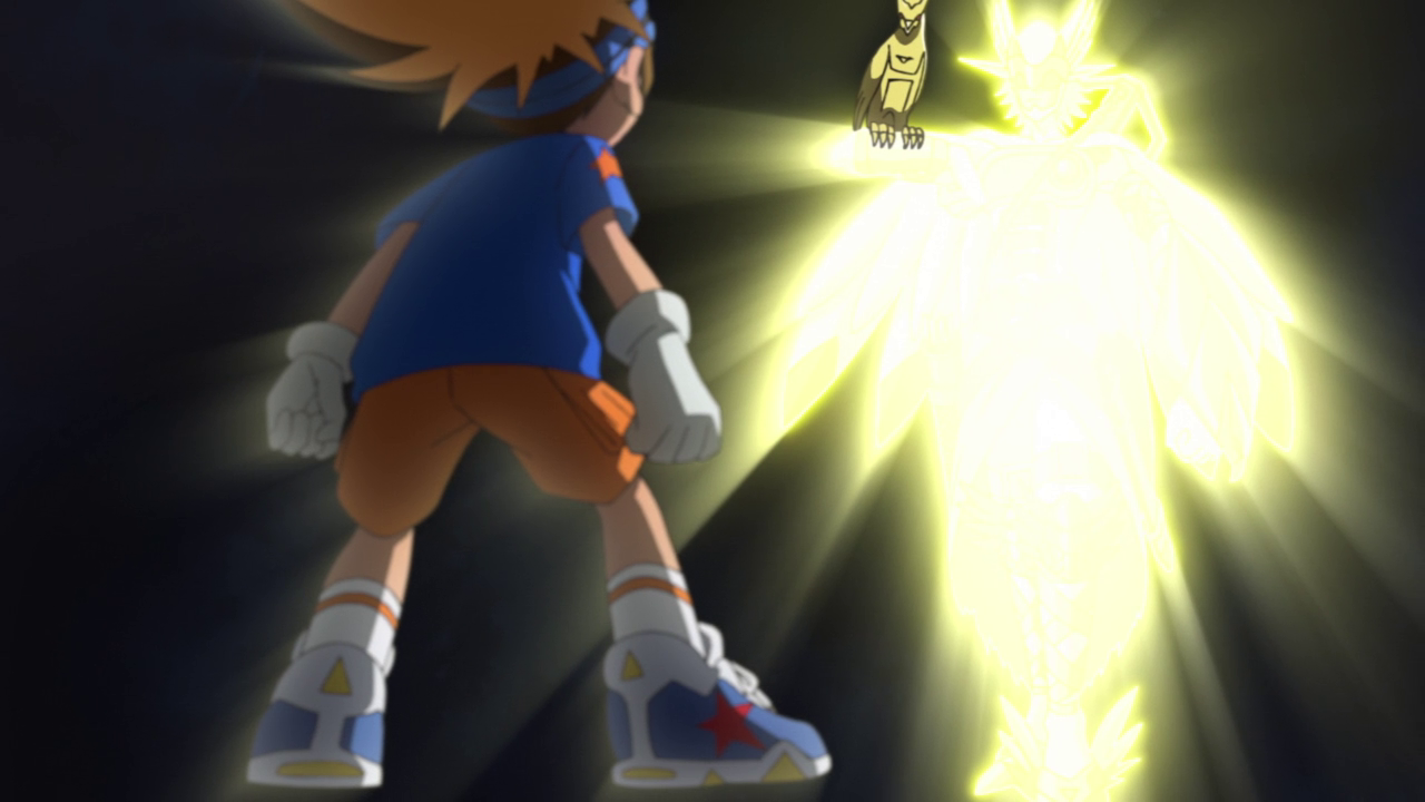 Taichi and Sora stumble upon an abandoned castle where one of the Digimon who fought in the War was waiting. On a brief silly tangent, when I saw this Digimon, I didn’t know its name and completely guessed that it was something along the lines of Valkyrie-mon. And boy was I surprised that I was actually RIGHT. While its name was Valkyrimon without the e, I still can’t believe I got it 95% correct without even knowing its freaking name. Something about it just screamed “valkyrie” and was I hyped over getting it right on the money.