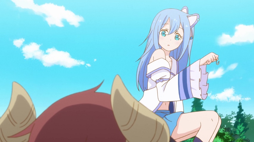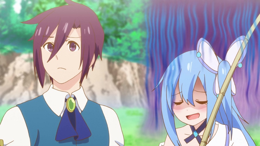 Gallow’s coming along too, unfortunately. I was initially annoyed that he was kinda shoehorned into this episode because really, his entire schtick at present is that he’ll do anything to try to impress Noela. Win a fishing competition, train a new employee, whatever it takes. Thankfully she doesn’t appear to be changing her mind about Gallow, which I’m happy about because I wouldn’t want the Demon King’s bratty antics to reduce Noela to a stupid trope. She seems to tolerate Gallow now instead of actively dislike him, and that’s enough for me.
