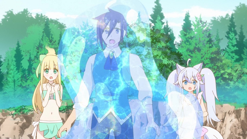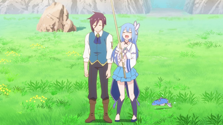 Reiji decides to fish on his own using his homemade jelly-based fish bait, and it’s not long before he hooks a huge fish! Except… it’s not a fish?! Yep Reiji hooks a water spirit with the appearance of a teenage girl. Her name is Vivi. :3