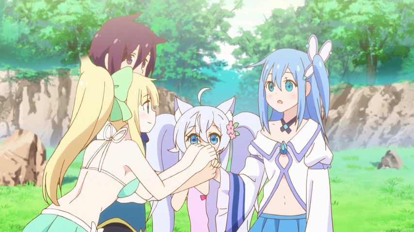 In the last segment of the episode, Anabel and Paula both return to the pharmacy to have a chat with Mina about getting some hair removal cream. I appreciated that the episode was rather vague about which part(s) of the body the cream was for, as in the real world there are multiple types of hair removal cream and some might up the show’s rating a little if Cheat Kusushi no Slow Life went into more detail. ^^;;