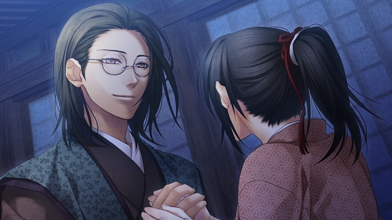 Frankly speaking, I don’t like Sanan much, not to the point of hating him though. My first impression of Sanan when I played the original game was that he is the kind intelligent type character who served as the “main brain” for the Shinsengumi. At the beginning, he was kind and considerate, but then he became a Fury and my opinion about him changed 120 degrees, especially after he attempted to cut Chizuru for her blood. And let’s not forget about what he became in Sano, Heisuke, and Saito’s routes. Remembering him in all those three routes boiled my blood! I felt like seeing Jekyll and Hyde in him! A mad scientist! Even seeing him in Hijikata’s route didn’t make me feel much better about him. However, his route in Shinkai gave more depth and development into his character.