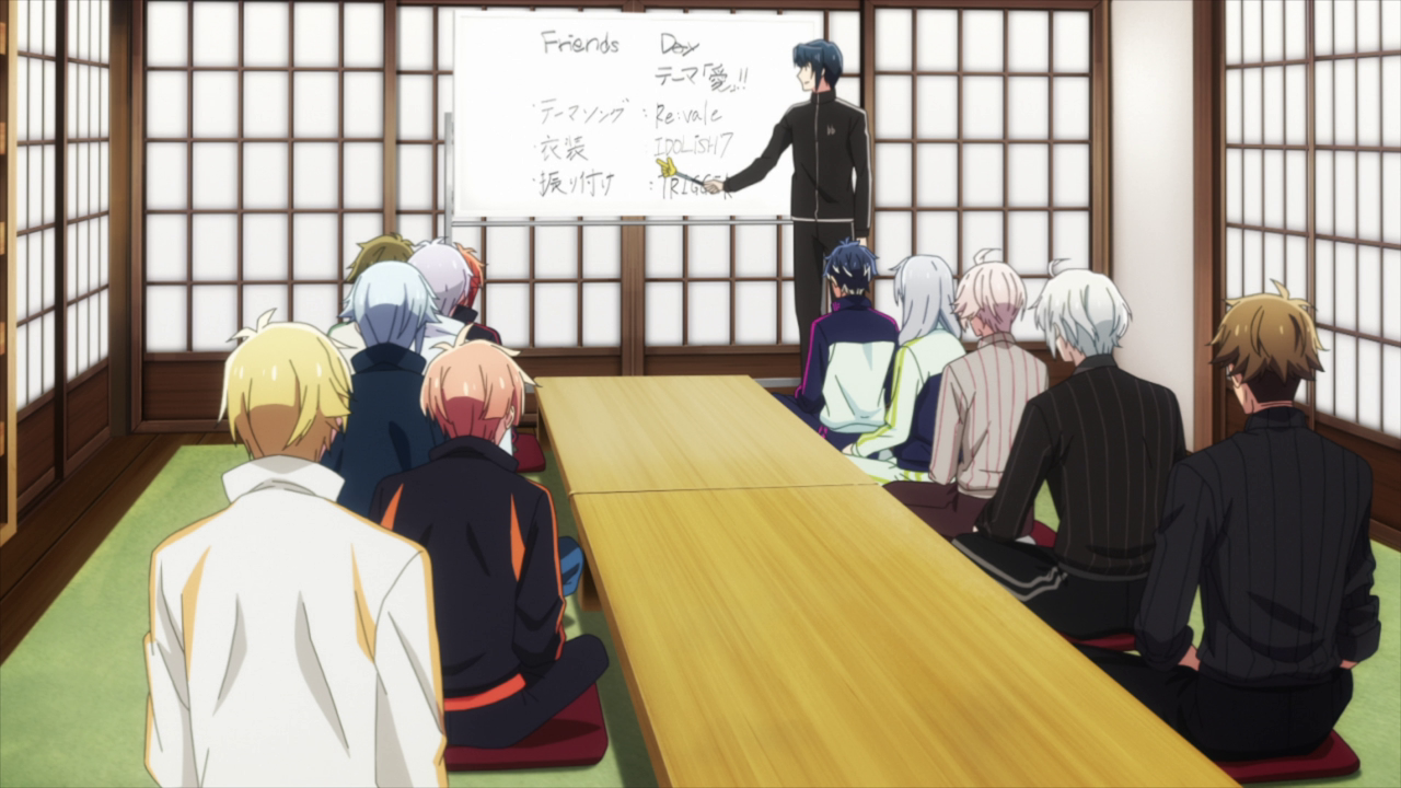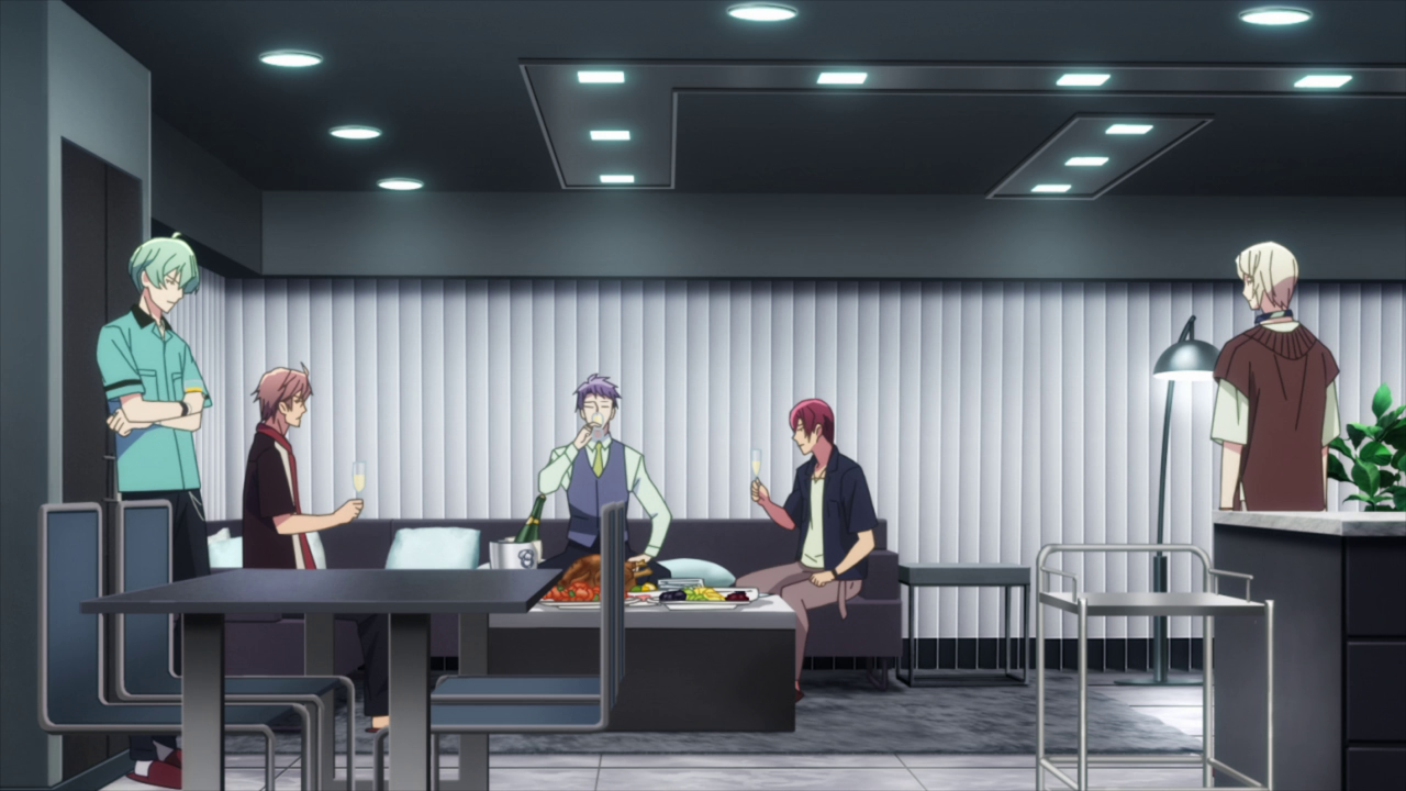 We get a small revelation of Haruka having been trained by Kujou at one point, only for him to be considered as a failed project when Tenn asks about him. Which explains a little as to why Haruka believes Tenn will be dropped eventually. We then switch over to see just what Haruka is up to… Plotting with the rest of this newly formed group that has yet to be named with Ryo. Ryo has officially been appointed the president of the Tsukumo Productions and immediately wants to make an example of whoever crosses him. Thankfully i7 isn’t being targeted this time since they’re too new. Though that doesn’t mean they won’t get caught in the crossfire… However, Ryo sets his sights on taking either Re:vale or Trigger down. It’s left up to a vote between all the members and of course Toma wants to sacrifice Trigger due to his misplaced blame on the group, which saddens me. Minami votes for Re:vale from a more logical standpoint of wanting to “remove popular figures quickly.” Torao didn’t care, which left the deciding vote up to Haruka and OF COURSE Haruka would choose Trigger. And thus, the plan for Trigger’s fall has officially commenced.