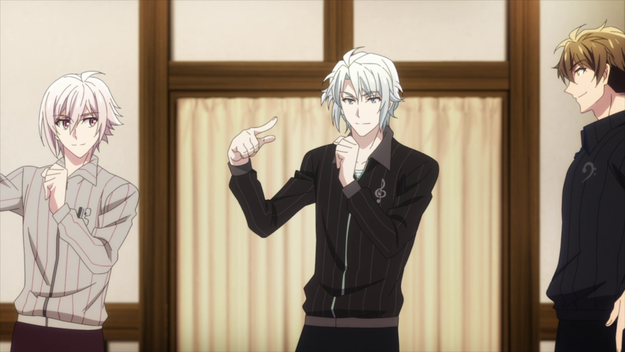 But dang, these boys really had to stay up for 24 hours… Well, more than 24 hours since they were already up and about before they were hurled into this situation. When it showed Yuki coming into the room looking as if he’s going to die, I felt that. I’ve also got to give my kudos to the managers as they had to stay up with their boys so they could keep an eye on them. Thankfully, this last minute all nighter proved to be successful as they were able to put together everything they needed to accomplish within the allotted time. And for some reason, I had a feeling Happy Creation was the song that Yuki was composing but then was like: wait, but wouldn’t the song need to have all three groups singing? So I retracted my guess to Welcome Future World as the song… only to be right with my first guess when Yuki started playing the song he composed. Initially I was like: Wait, why are they using this song with only Idolish7 and Re:vale- Oh. Which will lead us right into the other, more sinister part of the episode.