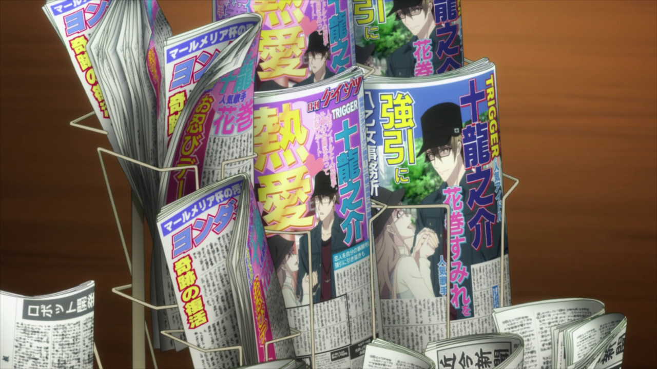 Man, they really came out here swinging at poor boy Ryu. Fairly early on, I feel like they put a target on his back with Ryo having Torao meet up with him to see if he was a leader in the modern day Chiba Salon in episode 3. And in that same episode, Torao mentioned that Hanamaki was having trouble with her agency and set them up to meet some time. Not only that, but Ryo is making his move against Trigger and seeing Ryu meet up with Hanamaki is rather… concerning. We’ve been made aware in episode 2 that she’s not doing too well at Tsukumo Productions and wished to leave. And I believed it when it was first brought up.