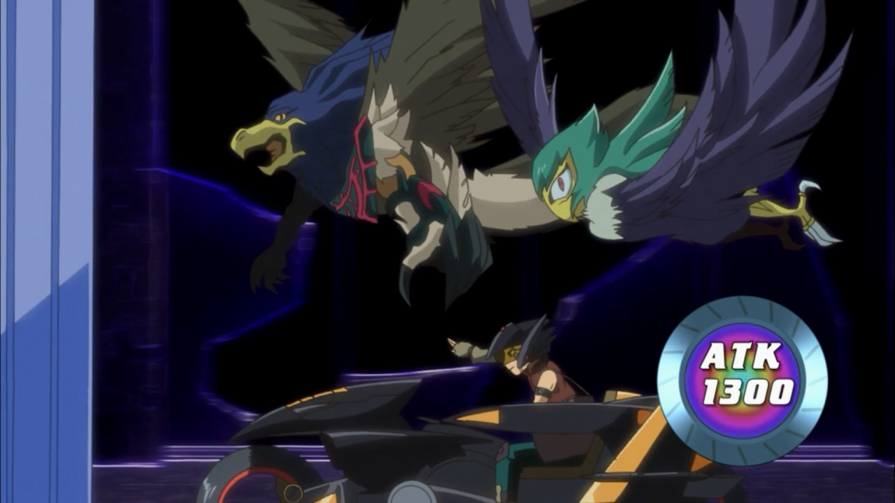 Crow has also shown us that like Yusei, he built his D-Wheel himself, which explains the nifty security feature he had installed on it and the signature wings. We got to see him duel twice, once solo and a tag-duel with Yusei against the cops to show off their bonds and Blackfeathers deck along with Crow’s trusty ace: Blackfeather Armor Wing.