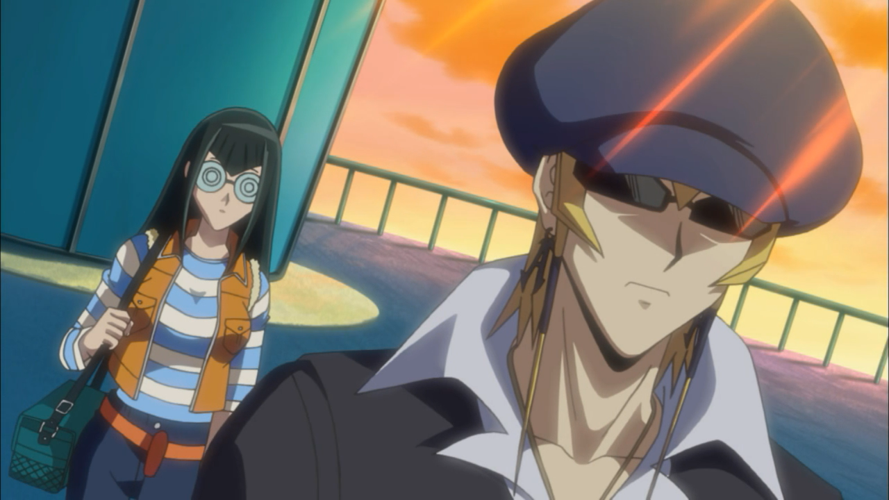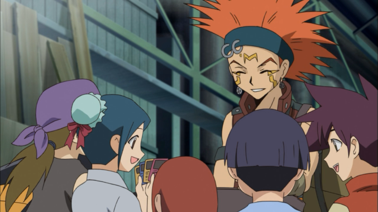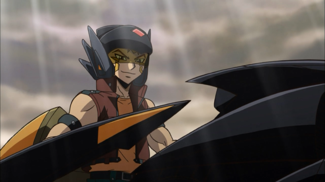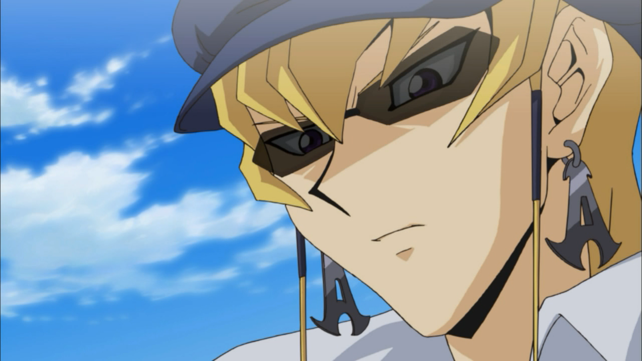 With the impending doom of Satellite, we are introduced to a new character, Crow. He is another one of Yusei’s and Jack’s childhood friends from Satellite. He certainly came off as a cocky character when dealing with the cops, brazenly running through the sensors and cheekily thanking them for bringing his ride over to secure his escape after his heist. However once he is done with the job, we can see he has a softer side of him, revealing the precious goods (cards of course) he steals are for the children to keep them out of trouble. It is his protecting them as, as he is constantly reminding them to be good and steer clear of attracting unwanted attention from security, or else they will end up looking like him with Criminal Markers all over his face.