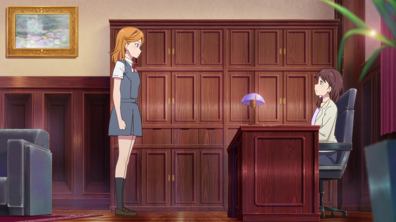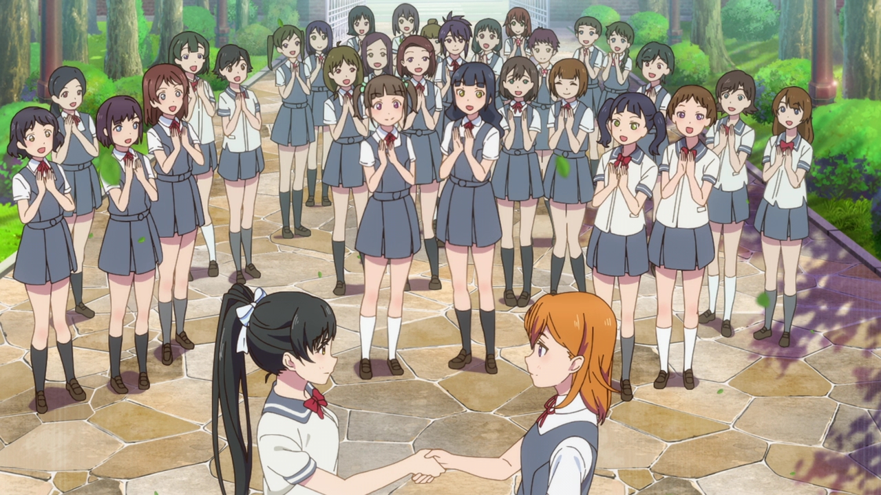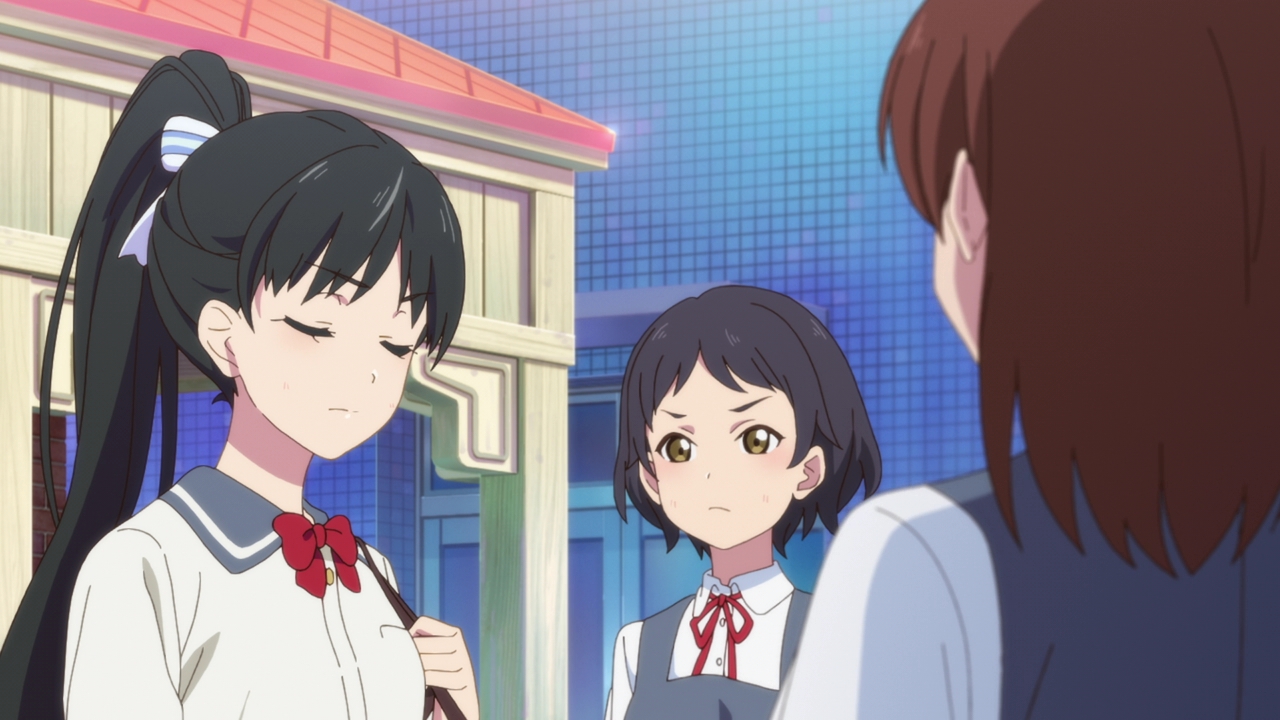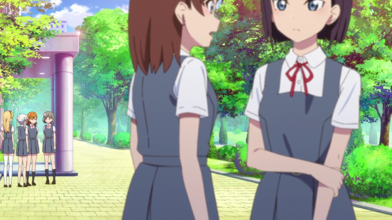 I’m tired of the same plot, but I will say that at least it’s more personal this time with the school being connected to Ren, instead of “hey i like this school, we gotta save it!”. And I do feel for her situation, and how badly she handled it. She’s a teenager with a lot of pressure on her shoulders, of course she did a crappy job. So badly that she almost incited a civil war in the school. In that sense I did like that tension in the school, but in the end things were resolved a little too quickly. Which is a good and bad thing because, we finally have the school idol group complete but again it was a little rushed. But I also do think it’s interesting that the person that wanted to be a school idol the most was actually Ren, but because of her jumping to conclusions she held back from it.