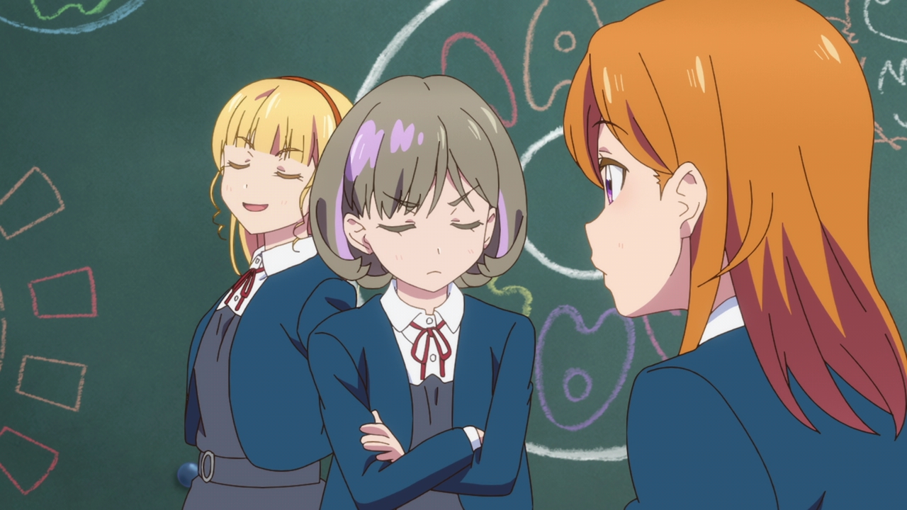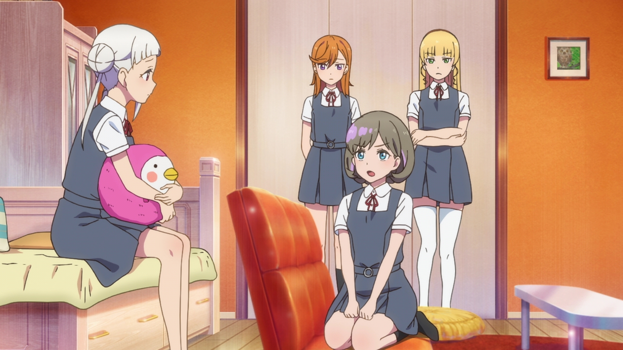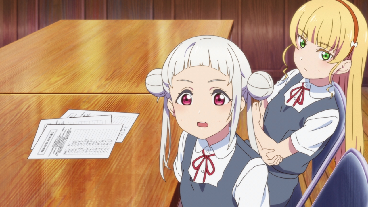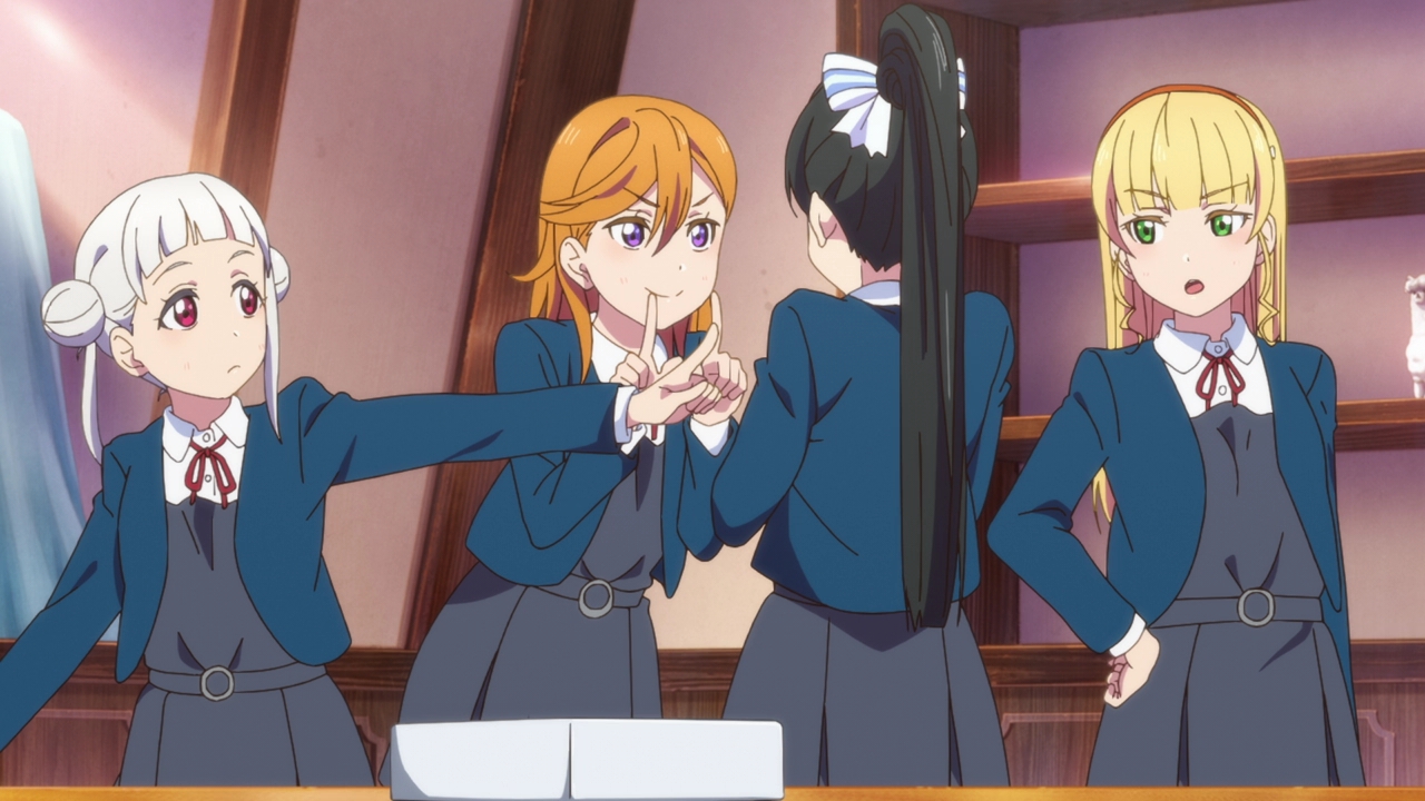 Now, the episode was fine. It was entertaining here and there but I have to mention something. And I feel bad because I feel like I’ve been complaining for the past two of three episodes, but there’s been something that’s been bugging me and it keeps happening which is: The girls rely too much on Kanon. Almost every major thing that happens with the group, the girls turn to Kanon to do something. The student council election? Obviously Kanon has to do it, even though she clearly doesn’t want to! Kanon you’re the leader, obviously you know the most about our group, you pick the name? The whole lyrics thing I guess makes sense since Kanon is the lyricist of the group, but the sheer pressure they put on her was kind of mean since they didn’t even offer helping her. I know each girl has their own role: Kanon the lyricist (sometimes composer), Keke the idol enthusiast with the most knowledge (understands the school idol world best), Sumire understands show business and fame (somewhat), Chisato the choreographer, and Ren the composer and choreography as well. I think it’s great that each girl has a role of their own they excel at and are a great asset to the group, but I just feel there’s too much dependence on Kanon for almost everything. Whenever a decision for the group has to be made, Kanon is always the one that has to make it. Keke always pins everything on her, even when Kanon looks uncomfortable or clearly needs some help. And I don’t know, it’s just rubbing me the wrong way. It puts all this pressure on Kanon, and the rest of the girls don’t seem to have their own opinions. Or when they do have their own opinions, the show purposely makes them too silly so Kanon can have the spotlight again.
