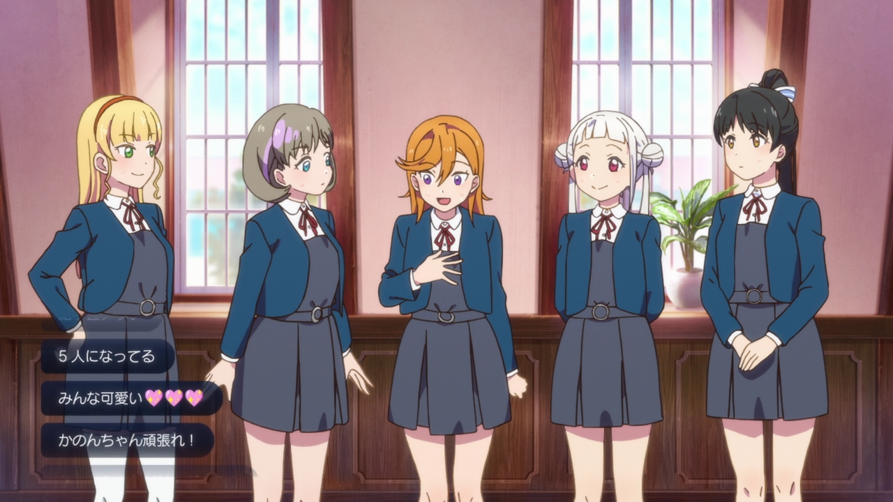 We finally have Liella! A very interesting take on the name, with a play on the French word meaning “connection”. It actually fits really well for them, and I always thought the name sounded pretty so it was nice to see it form.