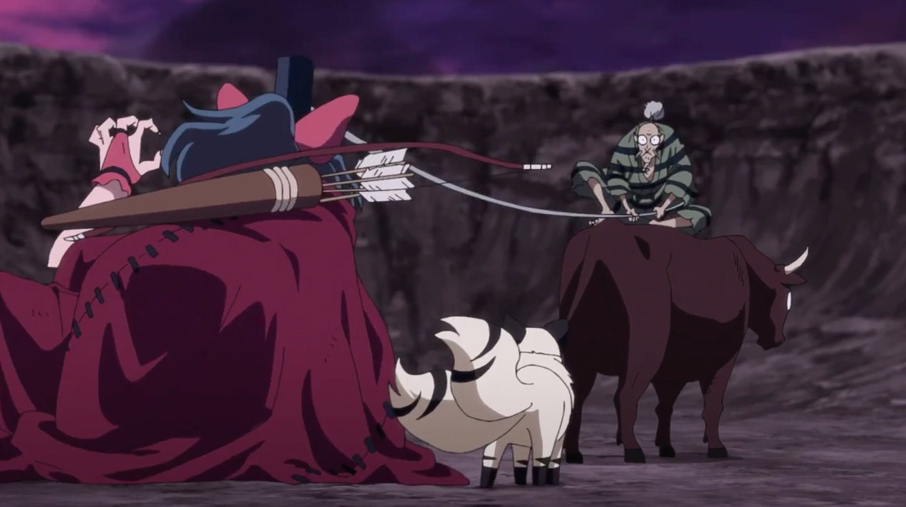 Next, while not much, was Moroha, who once again return as a comic relief of the episode. She never failed to make me laugh as usual since the first season. In this episode, she got smacked twice by Tottosai and then by Jaken, almost defeated by a swarm of yokai, and despite her hard work she got nothing at all in the end. This was pretty much how her bounty hunting usually ended up (defeating the yokai but didn’t get her reward because there’s no corpse to give as proof). No, if there’s one thing she got, that would be having her dead cousin came back alive.