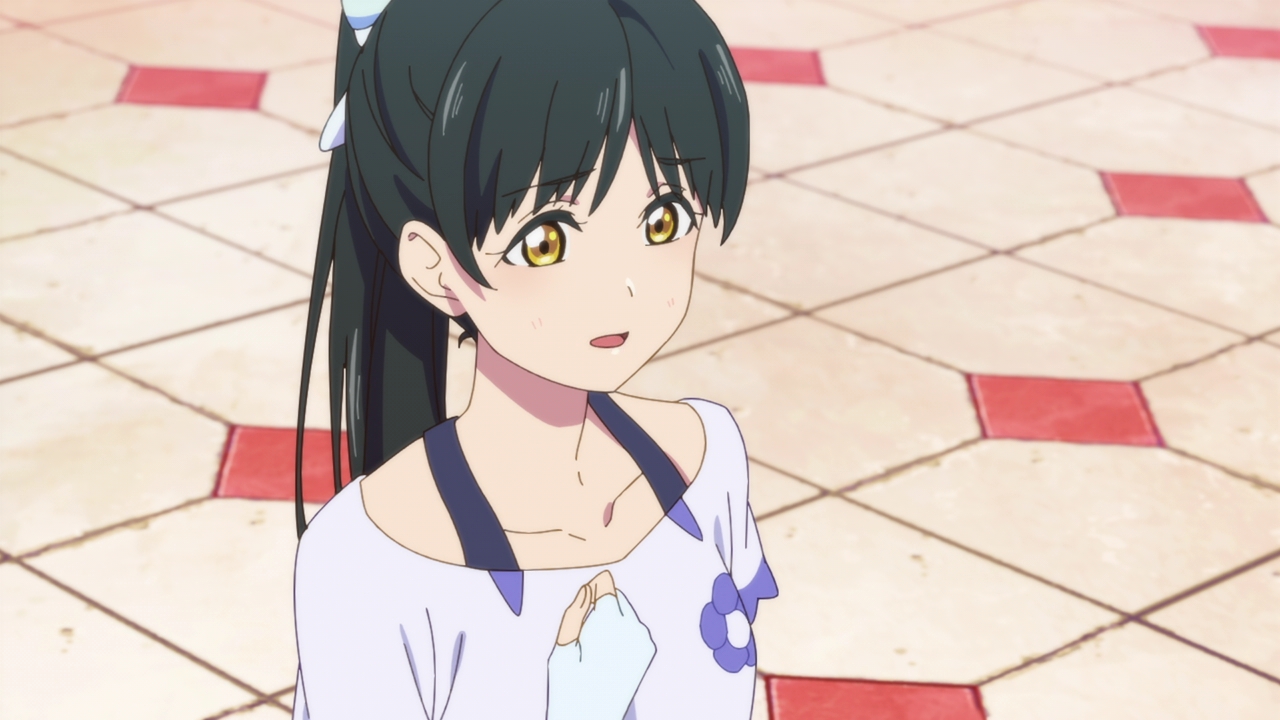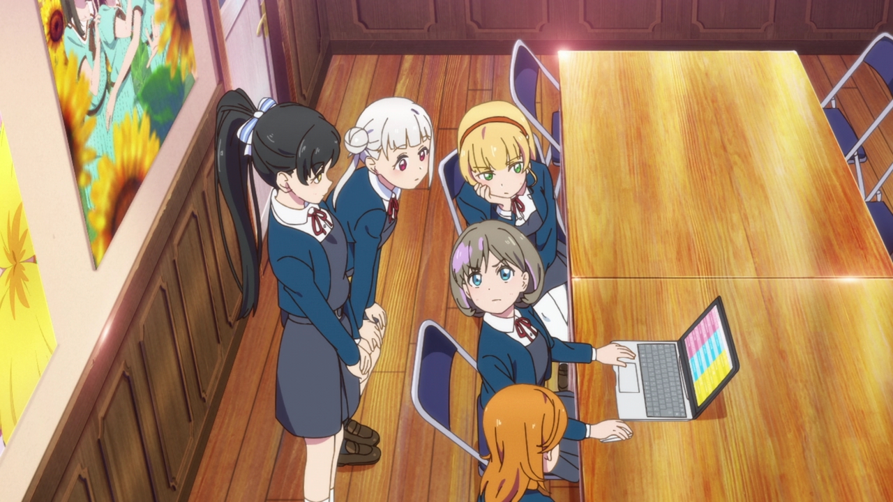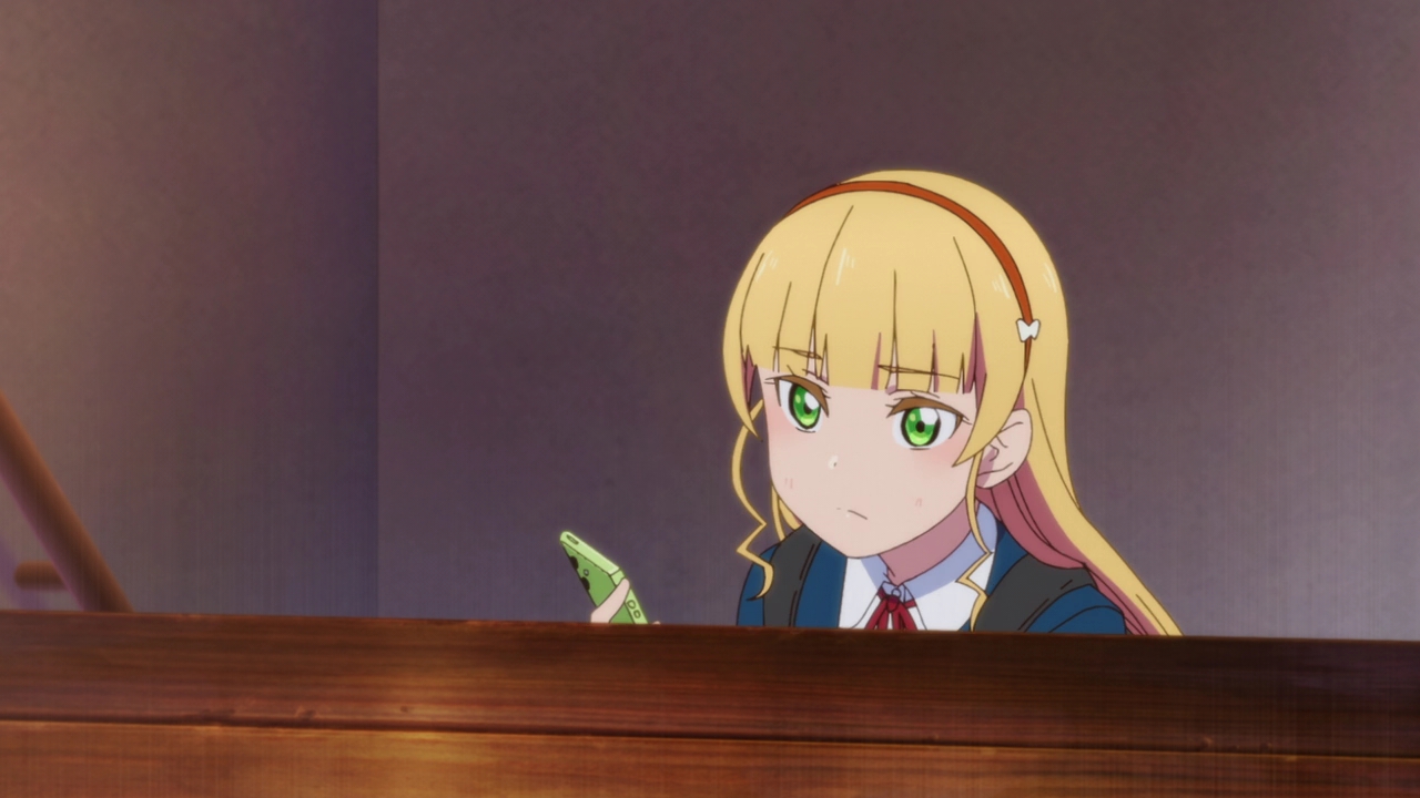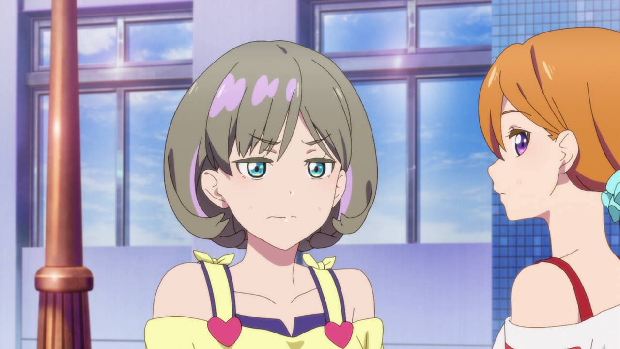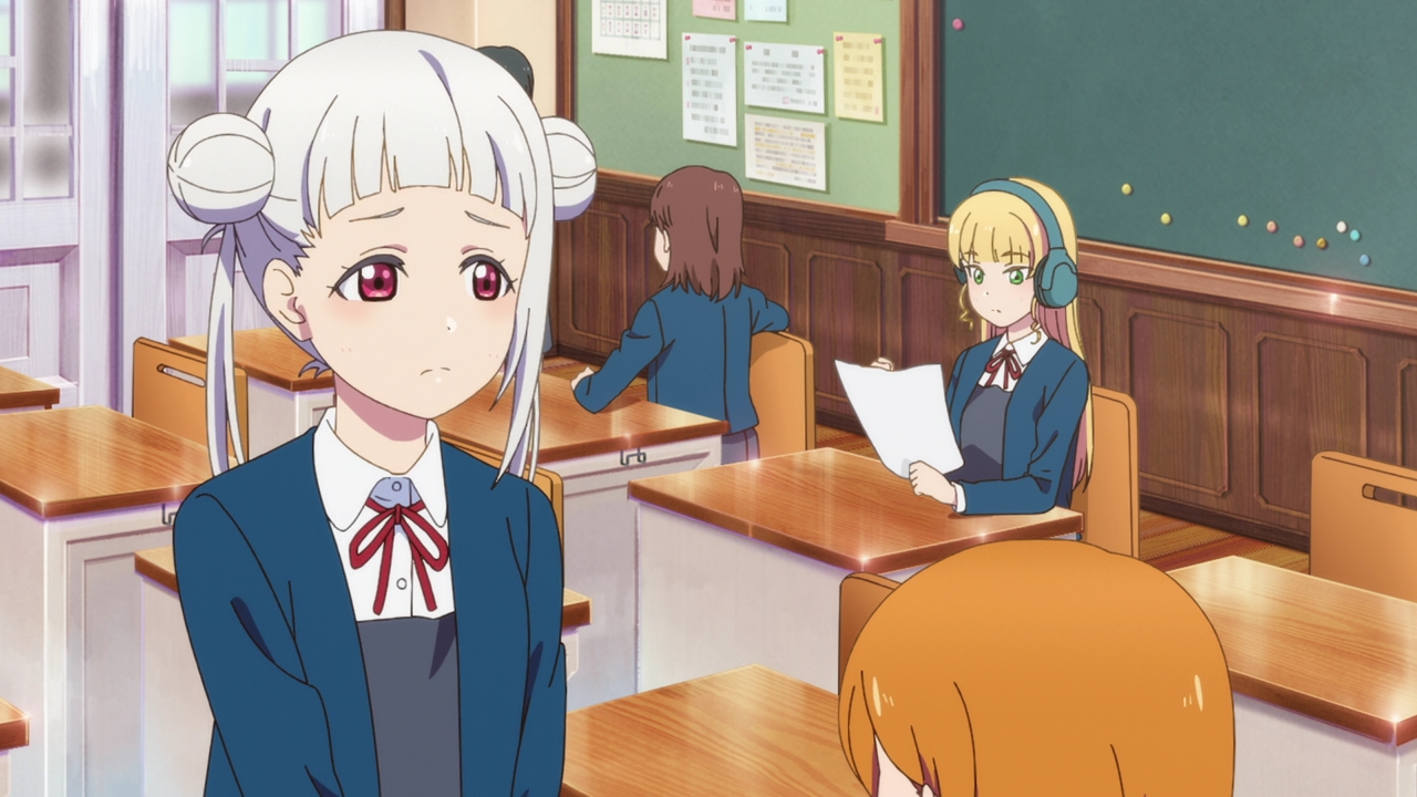I do have to say, I do like what they’re doing with Sumire. I do think she stands out with how stylish she is, but it’s interesting that they admit that Sumire can sing well, dance well, etc., but compared to the other girls she still doesn’t really stand out that much. Again, I don’t really agree with that and again I don’t think they’ve done a good job really showing us that, but we do know that Sumire has always been shafted when growing up in show business. She would never be the lead, only the supporting role. And after years of playing the supporting role and losing all chances at the spotlight, it really can get at you and mess with your confidence. And Sumire I think represents something that a lot of people relate with, something I can sort of connect with: You’re good at what you do, but not good enough to be praised for it. Basically, average. I don’t think Sumire is average, probably more above average, but she doesn’t have one thing that really sets her apart. She’s serious about what she does, she has a lot of passion and talent, and we see that she works really hard. And even then, after all those hours of practicing, it still isn’t enough. And sometimes life can just be like that. You work your ass off and it still doesn’t get you anywhere. You’re just there. I think that’s something a lot of people relate to, and I think it’s great that Love Live has given us a character like that. Sure, I wish they did a little better with it like really giving us alone time with Sumire to get her thoughts on everything and with her insecurities. Also actually seeing what the students had to say about Sumire instead of Chisato just saying it without showing us. But even so, Sumire isn’t like the other Love Live characters that we’ve had and I really appreciate that. And it makes me appreciate her way more than before.