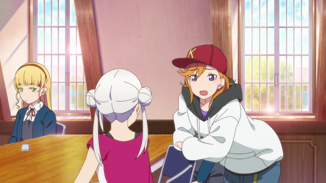 I’m glad that HOPEFULLY they’re going to lay the Keke vs Sumire banter to rest. At first I thought the teasing was a little funny, but lately I thought Keke took it a little far and was too mean spirited. I felt that way in the beginning of the episode when Keke implied having Sumire as the center was a bad idea since she’s always failed to be in the spotlight and…OUCH. I thought that was unnecessarily harsh of her to say. And I’m glad Kanon chimed in that she was the same way with never being able to sing in front of others until recently, because yeah good point! I know that Keke had been angry at Sumire for not taking school idols seriously at first, but to keep up this attitude is a little much. I also was not a fan of Sumire always being the butt of the jokes, I don’t want another Nico situation.