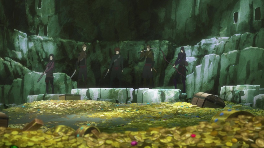 Technically not a whole lot happened this episode. Mainly just that Abel and his soldiers catch up to the Goblin Knights, who’ve been temporarily sidetracked by all the treasure and relics they’ve found in the cavern. As the knights fight against Abel’s soldiers, Abel himself walks onwards towards where Fena and Yukimaru are. (It’s honestly not much of a fight; as usual the knights are slaughtering their opponents fairly quickly.)