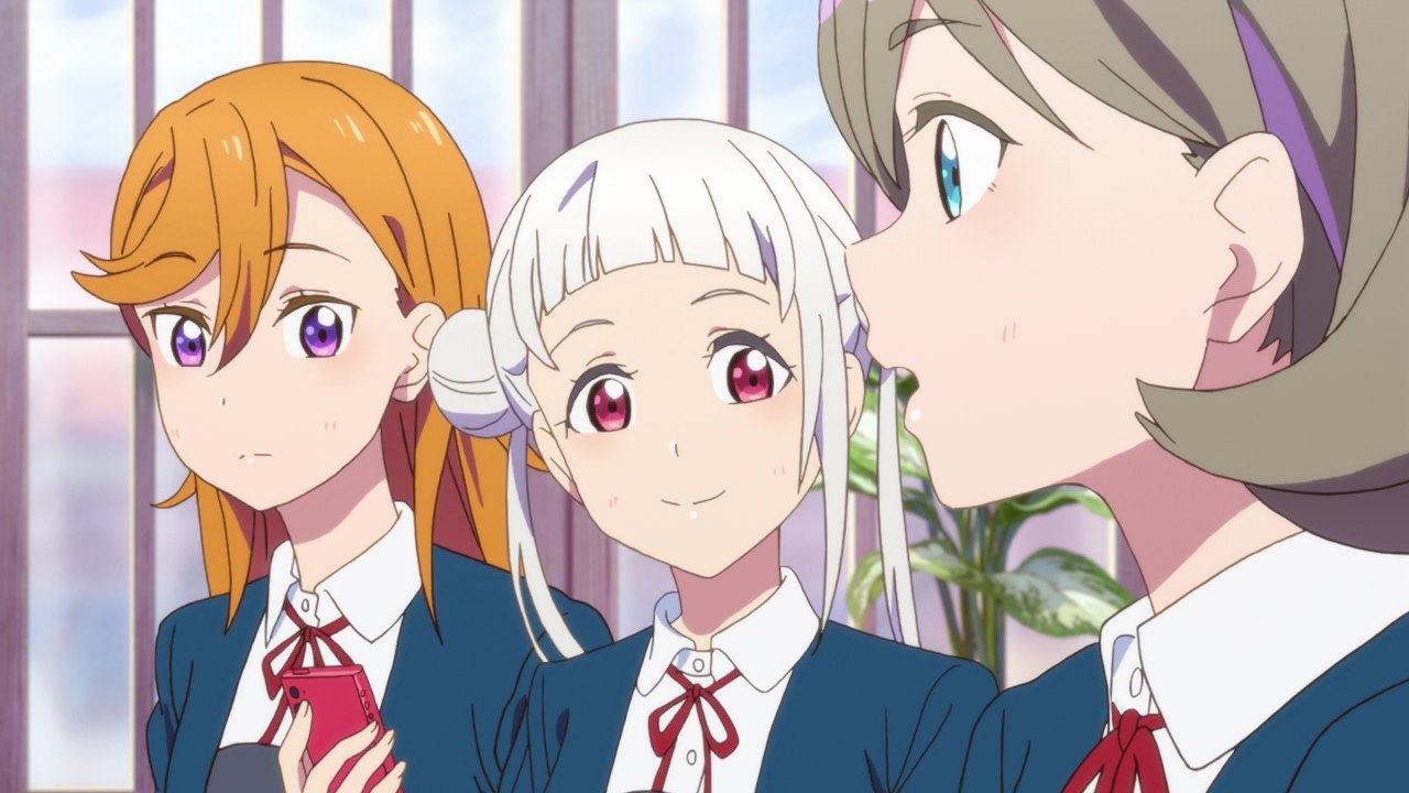 They made a big deal about the school closing, but it was resolved rather quickly. It’s great they’re in a better position now, but that sure was anticlimatic. Like, I’m glad this tired trope is done and over with but it also feels pretty pointless now that it’s been quickly resolved. So…what was the point? They didn’t even spend that much time on it so I feel like that plot point could have easily been cut and nothing in the story would have changed. They probably could have tweaked Ren’s story to where her mom made the school idol group for some other reason. Kinda leaves me frustrated.