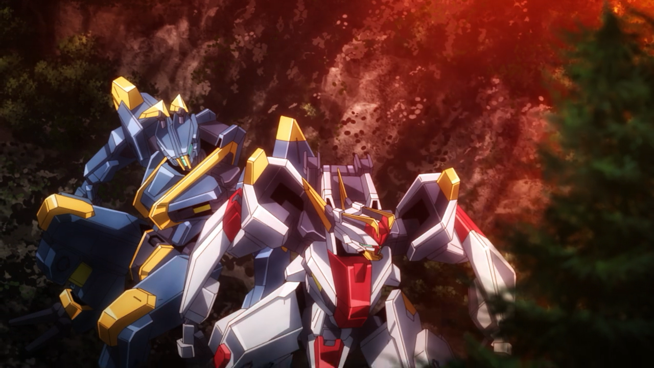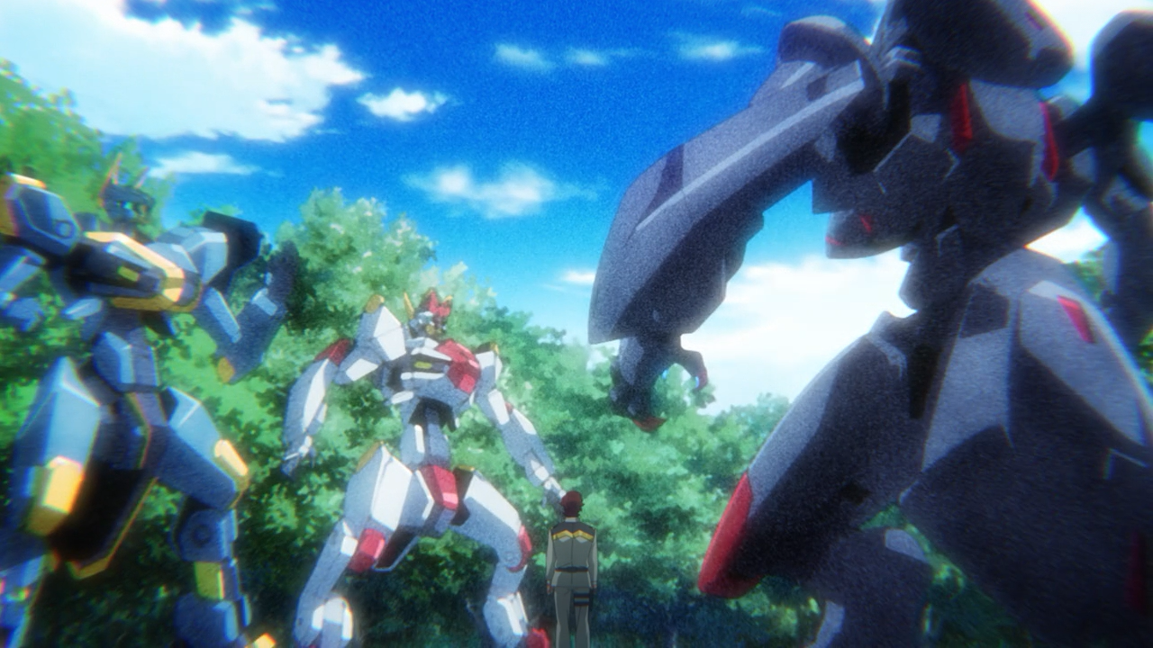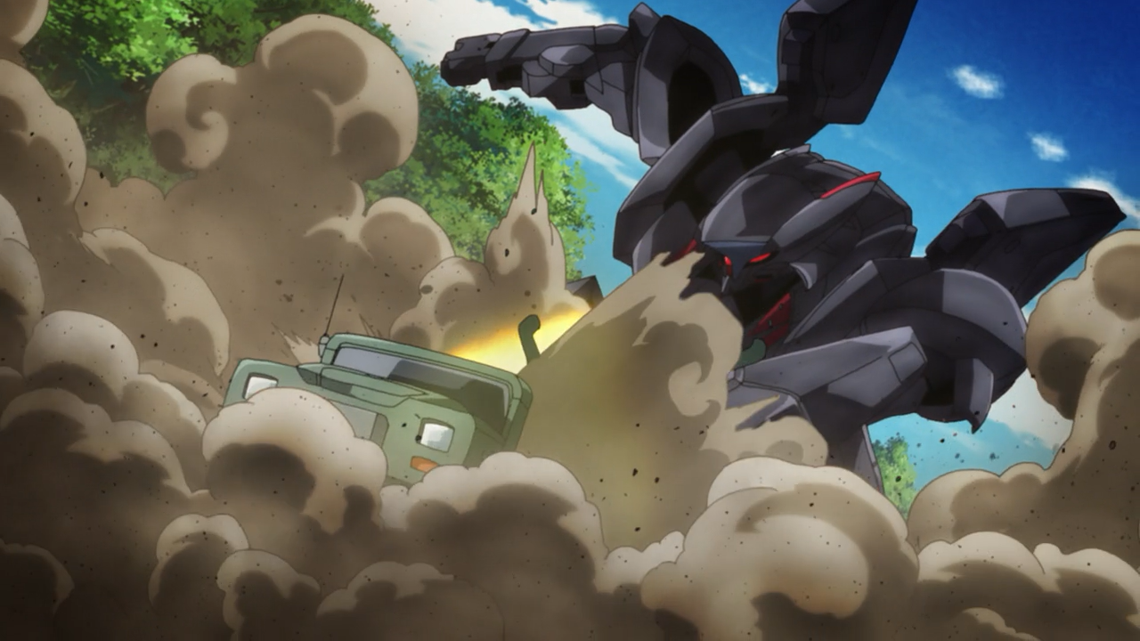 Whelp, RIP Risa. As expected, she wasn’t going to survive this one and was taken out within the first two minutes of the episode. The monster AMAIM that ambushed the camp is none other than Ghost. It is suspected to be an unmanned AMAIM that possesses self-improvement A.I. technology. To make matters worse, nobody knows the allegiance it belongs to, and there are reports that it has a history or also attacking the Asian and North American military. With no affiliation to tie this thing to, we may as well describe Ghost to be an AMAIM gone rogue, which is a terrifying thought considering how it just pops out of nowhere ambushes whoever is on its path. The scary part about it is that it continues to evolve, it has the ability to self-repair by picking off whatever AMAIM parts and weapons from his opponents’ on the battlefield, because it can override the authentication to use it for itself. Gashin witnessed that first hand after Ghost had brutally murdered his father, and extracted an arm from his unit to replace its own. He was able to confirm it was the same machine because it was still carrying the arm-piece Jo Hound (Resistance Custom) from the unit his father had been piloting. We were also able to get confirmations from Captain Watt that yes, Ghost’s limiters were disabled, given its ridiculous speed, it had boosters and accelerators installed. In fact, they go on to mention that the Resistance were lucky to have even escaped death. Ghost’s specs are nothing to sneeze at, and we saw when it was eventually cornered, it looked as though opted for self-destruction, (and according to Kei, it was ready to die), but incredibly after they were able to safely retreat, it didn’t explode, which means it’s still alive and kicking.