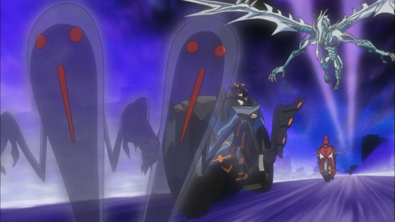 Finally, after his short reunion and breather with Rally and the others, Yusei had planned to go out to deal with the Dark Signers on his own, but before he could, Crow caught him and decided to join the party. It doesn’t take long before they run into the first Dark Signer: Kiryu, who is someone they both know, or rather knew personally very well. And to make matters worse: He claims he’s back for revenge.